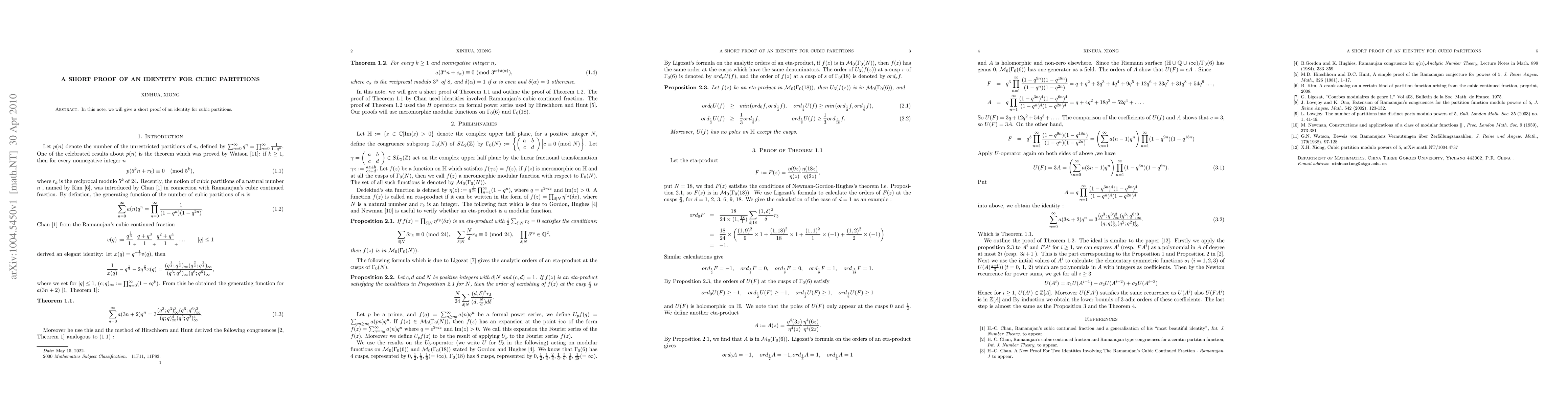 Summary: This paper presents a concise and straightforward proof of an identity related to cubic partitions, offering a novel approach to the mathematical topic. The simplicity of the proof highlights the elegance of the underlying structure in cubic partition theory.