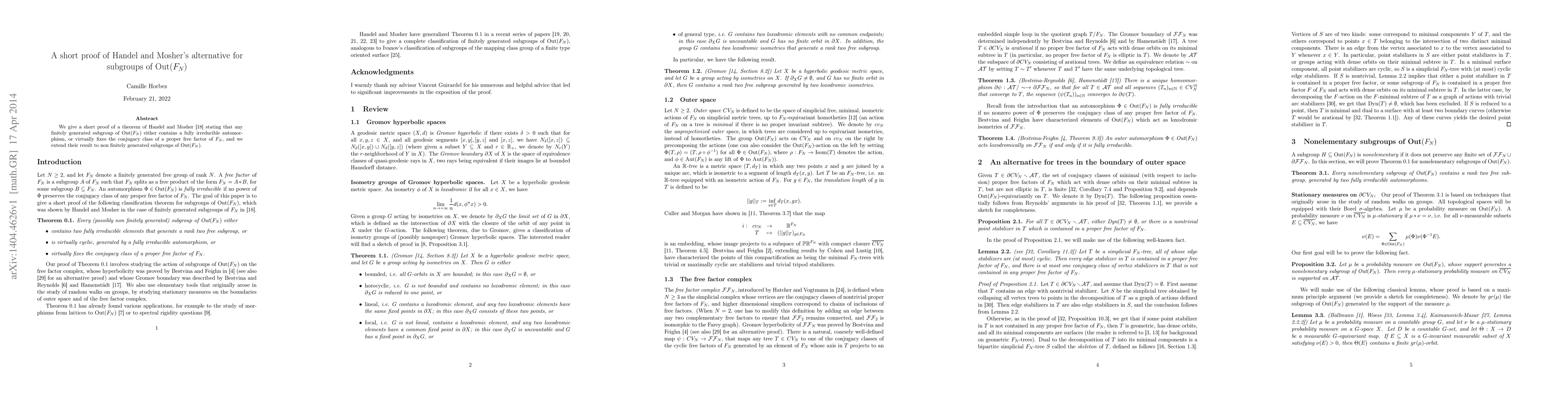 We give a short proof of a theorem of Handel and Mosher stating that any finitely generated subgroup of $\text{Out}(F_N)$ either contains a fully irreducible automorphism, or virtually fixes the conjugacy class of a proper free factor of $F_N$, and we extend their result to non finitely generated subgroups of $\text{Out}(F_N)$.