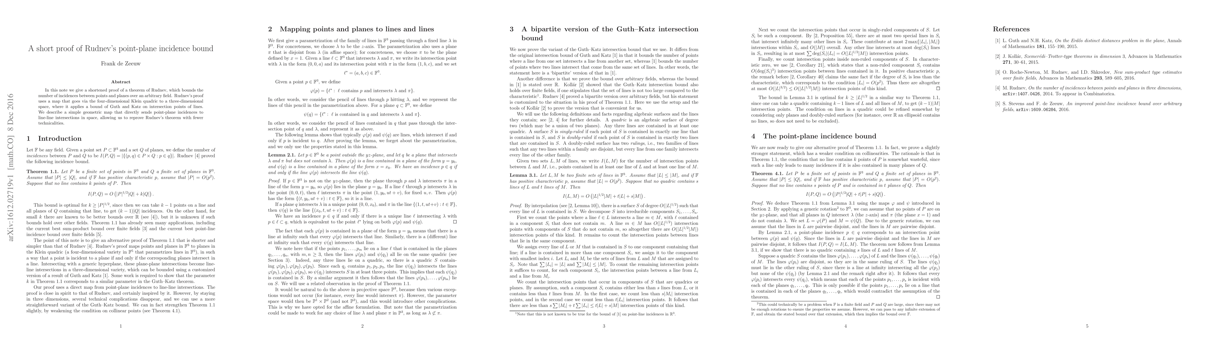 In this note we give a shortened proof of a theorem of Rudnev, which bounds the number of incidences between points and planes over an arbitrary field. Rudnev's proof uses a map that goes via the four-dimensional Klein quadric to a three-dimensional space, where it applies a bound of Guth and Katz on intersection points of lines. We describe a simple geometric map that directly sends point-plane incidences to line-line intersections in space, allowing us to reprove Rudnev's theorem with fewer technicalities.