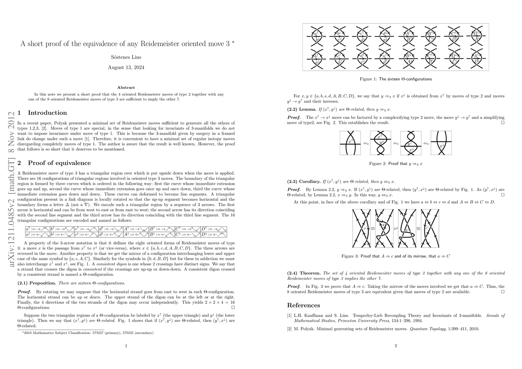 In this note we present a short proof that the 4 oriented Reidemeister moves of type 2 together with any one of the 8 oriented Reidemeister moves of type 3 are sufficient to imply the other 7.