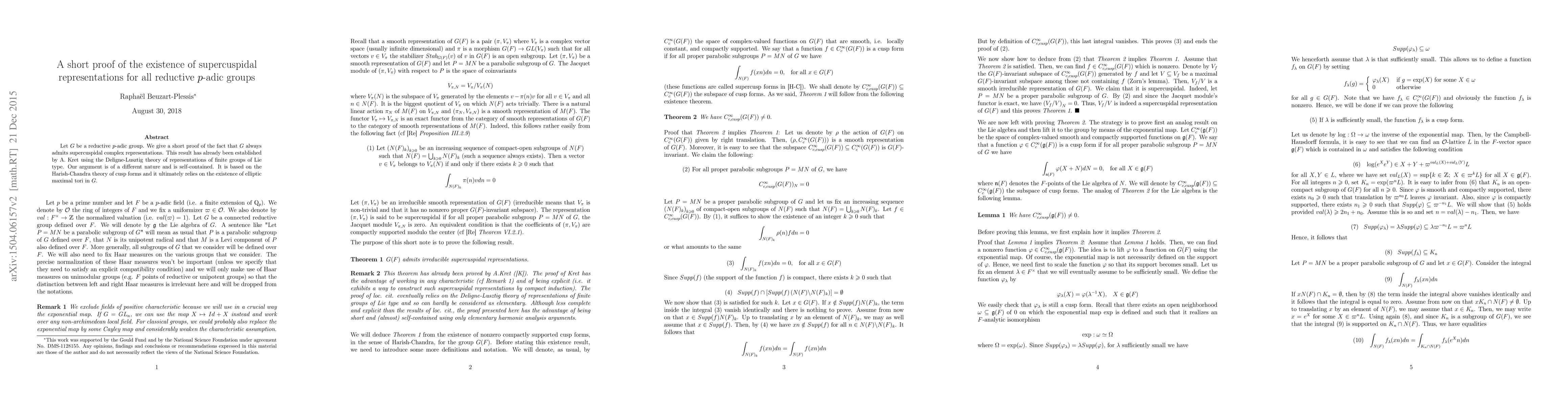 The paper presents a concise proof for the existence of supercuspidal representations for all reductive $p$-adic groups, differing from prior work by utilizing Harish-Chandra theory and the existence of elliptic maximal tori instead of Deligne-Lusztig theory. This self-contained approach provides an alternative route to establishing this result.