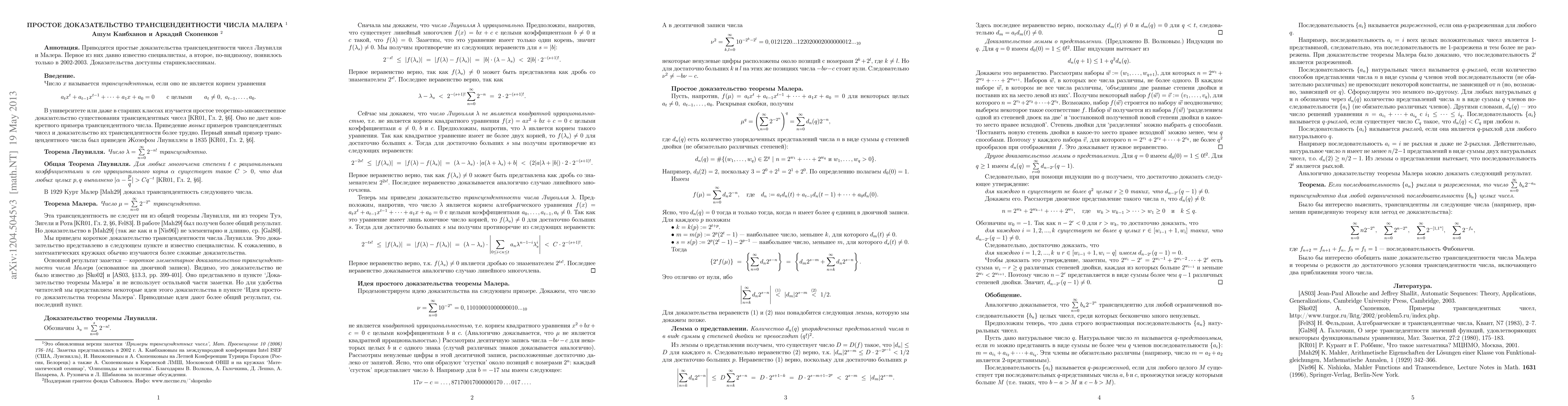 We present short proofs of the transcendence of the Liouville and the Mahler numbers. The first proof is known for a long time, the second proof apparently appeared only in 2002-2003. The proofs are accessible to high-school students.