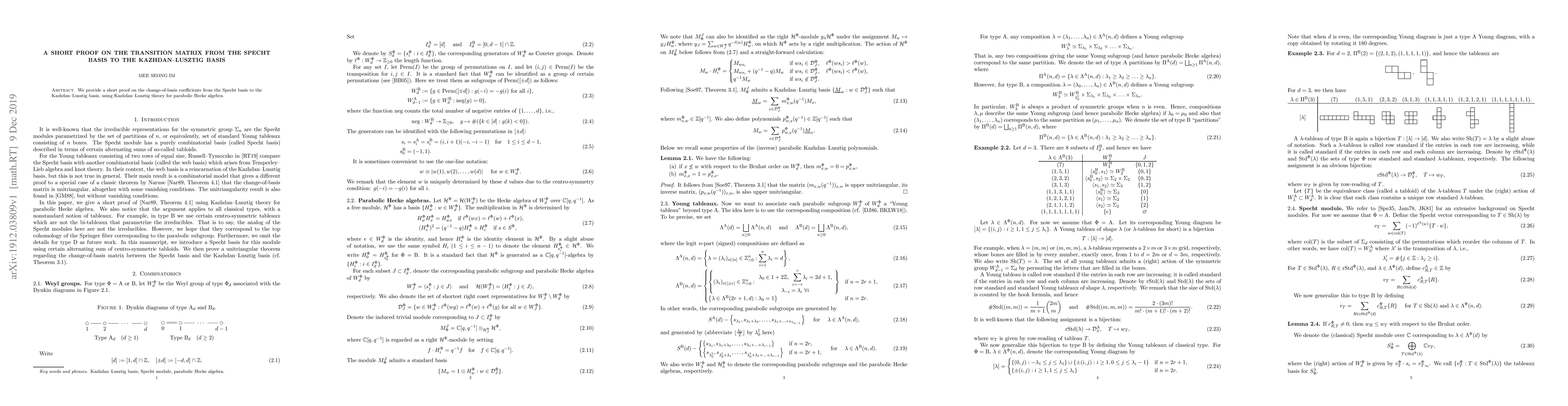 We provide a short proof on the change-of-basis coefficients from the Specht basis to the Kazhdan-Lusztig basis, using Kazhdan-Lusztig theory for parabolic Hecke algebra.