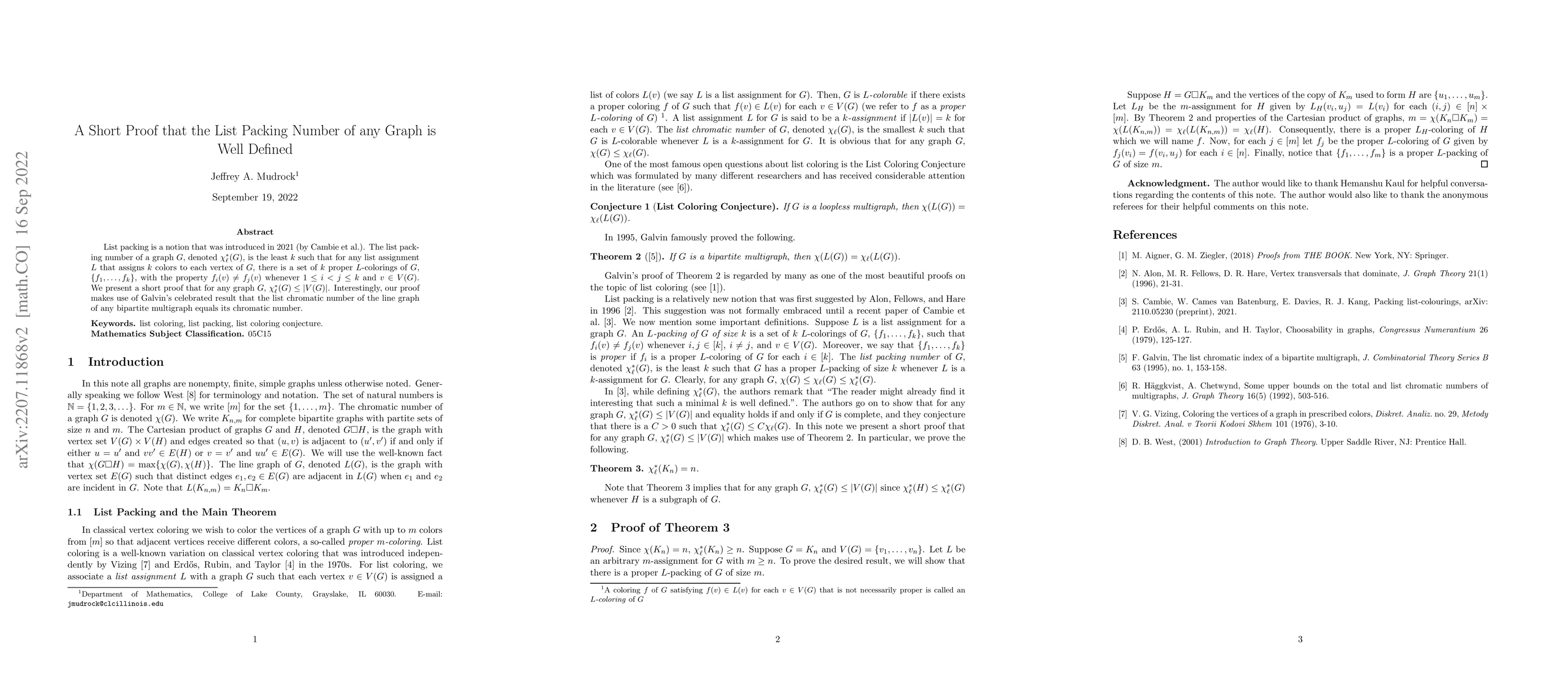 The research used a short proof that for any graph G, χ∗ℓ(G) ≤ |V(G)|