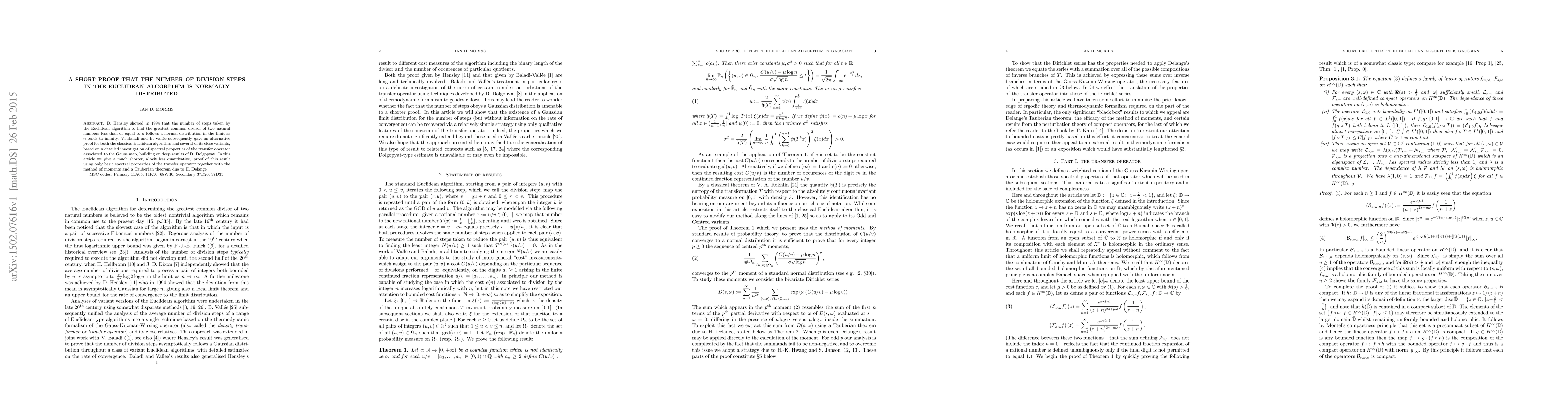 D. Hensley showed in 1994 that the number of steps taken by the Euclidean algorithm to find the greatest common divisor of two natural numbers less than or equal to n follows a normal distribution in the limit as n tends to infinity. V. Baladi and B. Vall\'ee subsequently gave an alternative proof for both the classical Euclidean algorithm and several of its close variants, based on a detailed investigation of spectral properties of the transfer operator associated to the Gauss map, building on deep results of D. Dolgopyat. In this article we give a much shorter, albeit less quantitative, proof of this result using only basic spectral properties of the transfer operator together with the method of moments and a Tauberian theorem due to H. Delange.