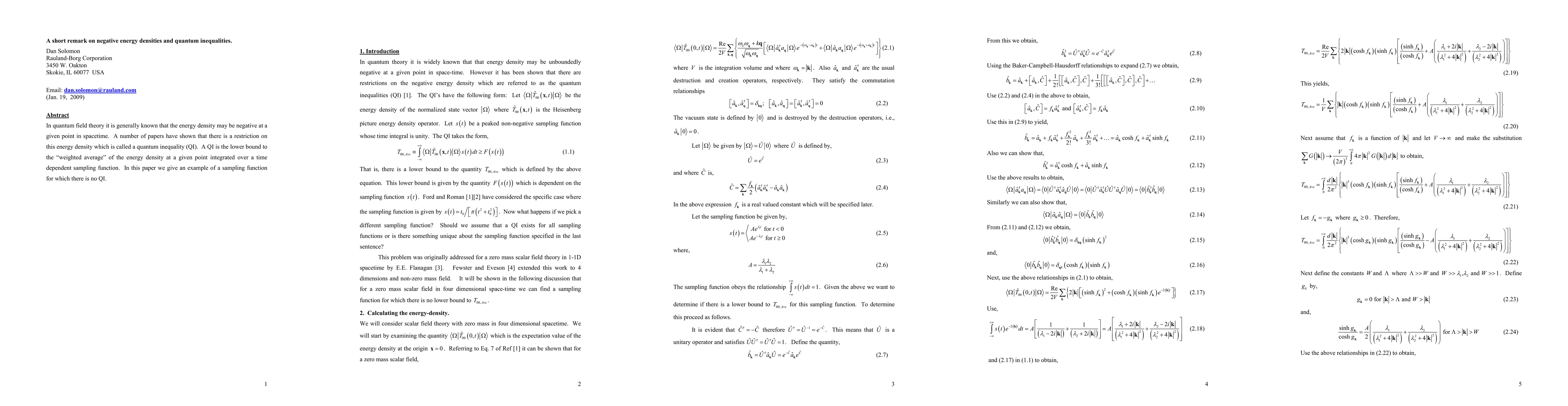 Researchers found a sampling function that violates quantum inequalities, allowing for negative energy densities without a lower bound, challenging current understanding of quantum field theory.