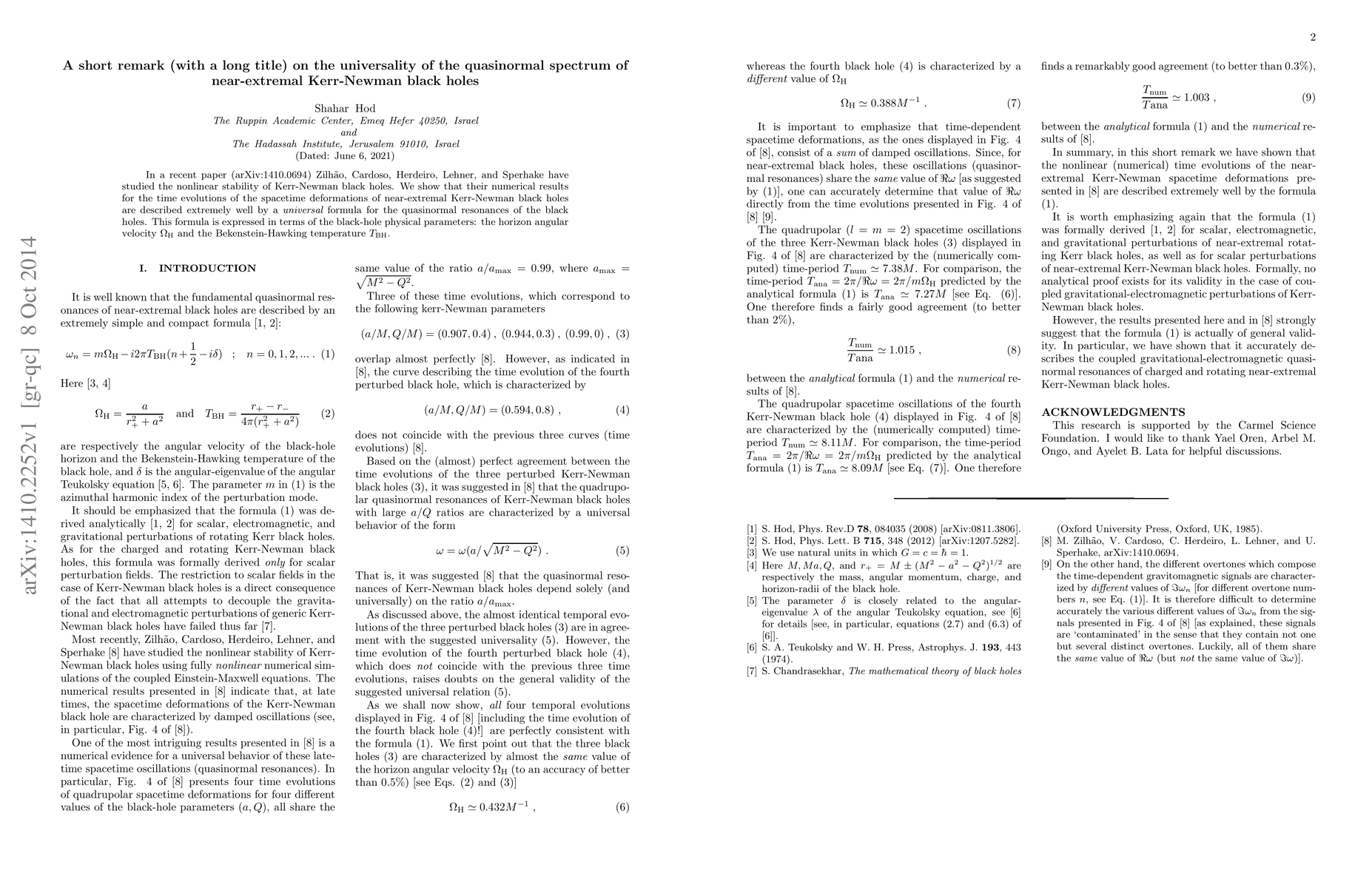 In a recent paper (arXiv:1410.0694) Zilh\~ao, Cardoso, Herdeiro, Lehner, and Sperhake have studied the nonlinear stability of Kerr-Newman black holes. We show that their numerical results for the time evolutions of the spacetime deformations of near-extremal Kerr-Newman black holes are described extremely well by a {\it universal} formula for the quasinormal resonances of the black holes. This formula is expressed in terms of the black-hole physical parameters: the horizon angular velocity $\Omega_{\text{H}}$ and the Bekenstein-Hawking temperature $T_{\text{BH}}$.