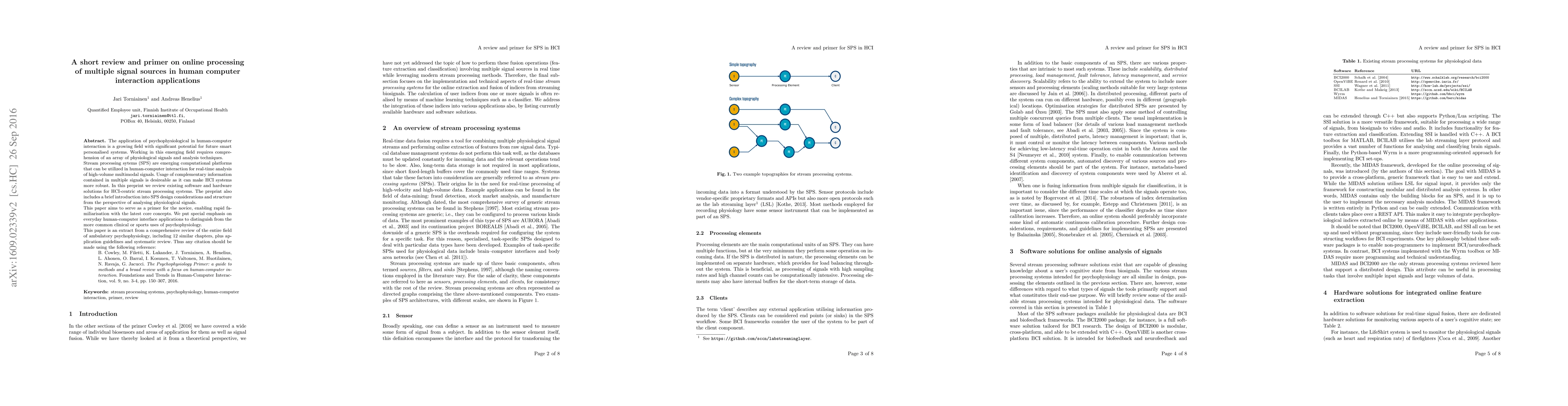 This paper reviews software and hardware solutions for stream processing systems in human-computer interaction, emphasizing real-time analysis of multimodal physiological signals for robust HCI systems. It serves as a primer for newcomers, focusing on everyday applications rather than clinical or sports uses.