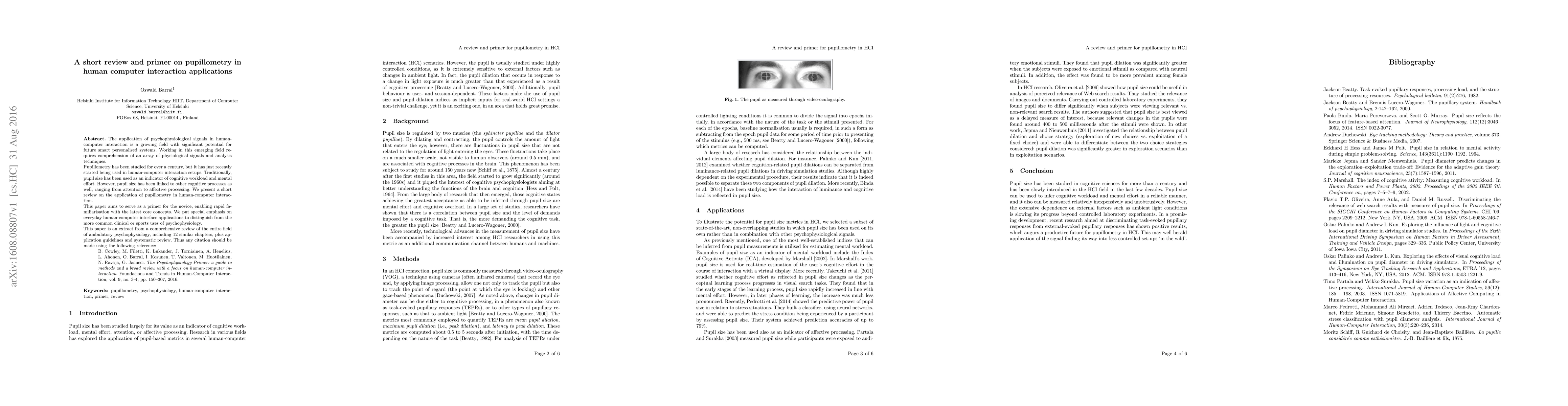This paper provides a concise review and primer on the use of pupillometry in human-computer interaction, highlighting its potential as a measure of cognitive workload and other mental processes. It aims to familiarize novices with core concepts and everyday applications, distinguishing them from clinical or sports uses of psychophysiology.