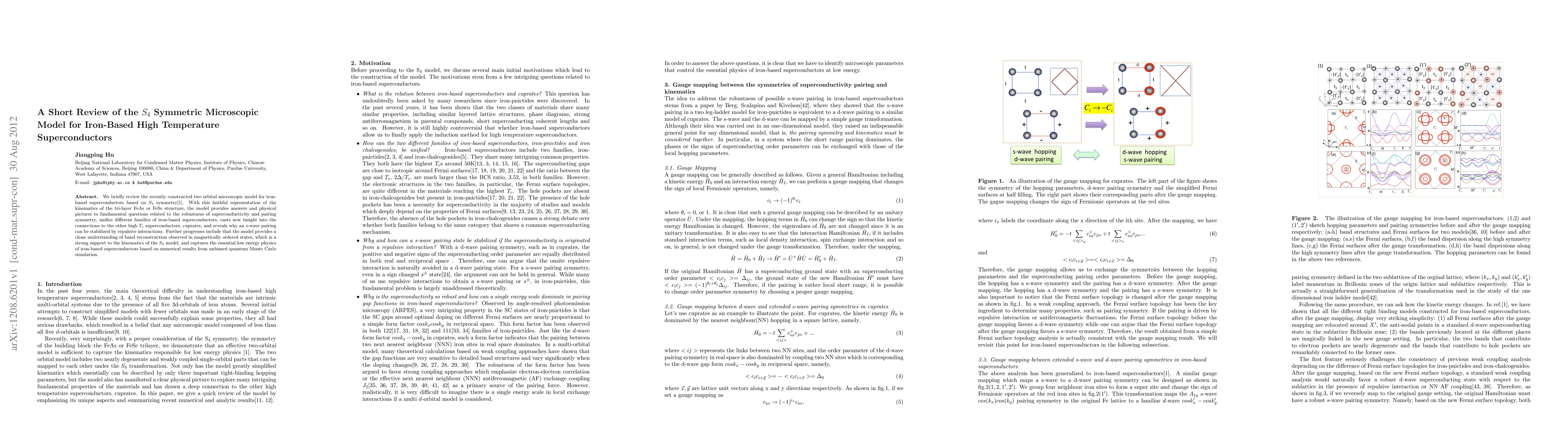 This paper reviews the $S_4$ symmetric microscopic model for iron-based high-temperature superconductors, explaining its role in addressing the robustness of superconductivity and pairing symmetry, and unifying various iron-based superconductor families. The model also offers insights into s-wave pairing stabilization and supports band reconstruction in magnetically ordered states.