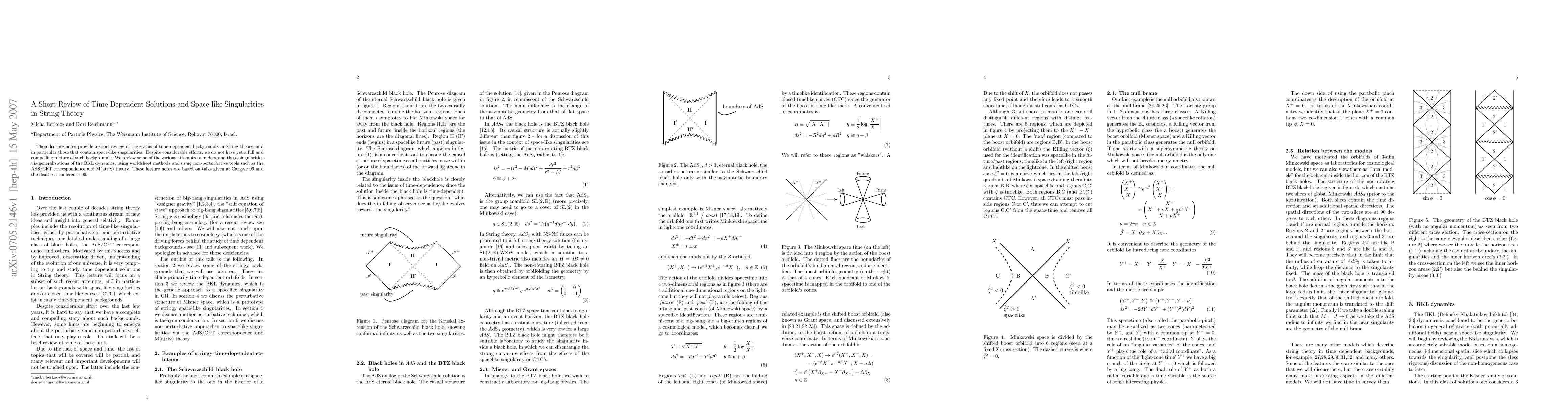 These lecture notes provide a short review of the status of time dependent backgrounds in String theory, and in particular those that contain space-like singularities. Despite considerable efforts, we do not have yet a full and compelling picture of such backgrounds. We review some of the various attempts to understand these singularities via generalizations of the BKL dynamics, using worldsheet methods and using non-perturbative tools such as the AdS/CFT correspondence and M(atrix) theory. These lecture notes are based on talks given at Cargese 06 and the dead-sea conference 06.