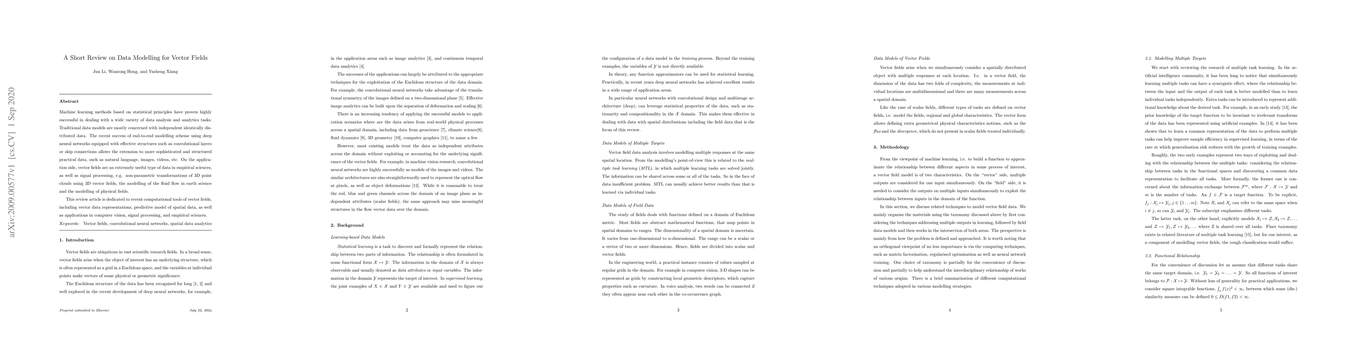 This review article explores how machine learning methods using deep neural networks can model vector fields, which have applications in various fields such as computer vision, signal processing, and empirical sciences.