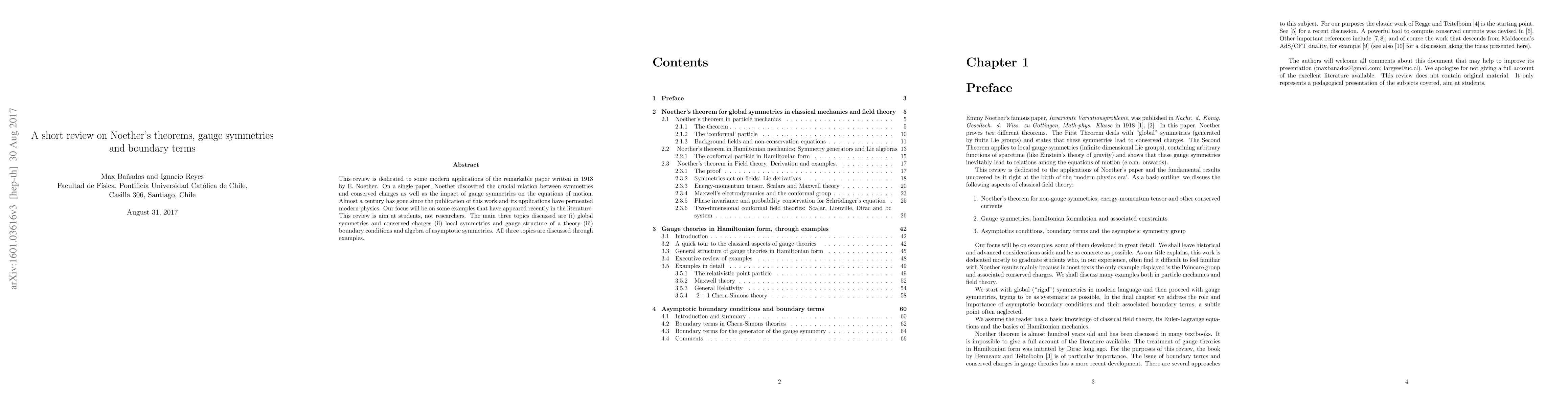 This review is dedicated to some modern applications of the remarkable paper written in 1918 by E. Noether. On a single paper, Noether discovered the crucial relation between symmetries and conserved charges as well as the impact of gauge symmetries on the equations of motion. Almost a century has gone since the publication of this work and its applications have permeated modern physics. Our focus will be on some examples that have appeared recently in the literature. This review is aim at students, not researchers. The main three topics discussed are (i) global symmetries and conserved charges (ii) local symmetries and gauge structure of a theory (iii) boundary conditions and algebra of asymptotic symmetries. All three topics are discussed through examples.