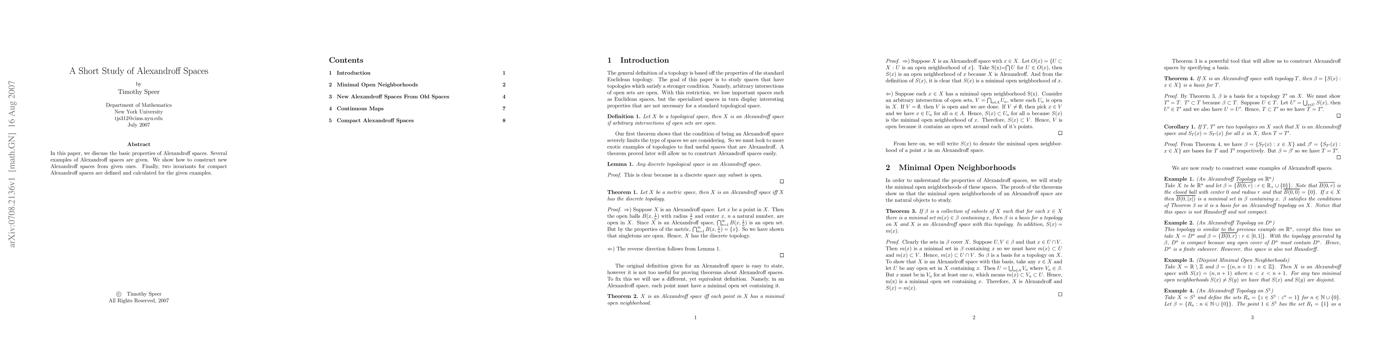 This paper explores the fundamental characteristics and construction methods of Alexandroff spaces, provides several illustrative examples, and defines and calculates two invariants for compact Alexandroff spaces.