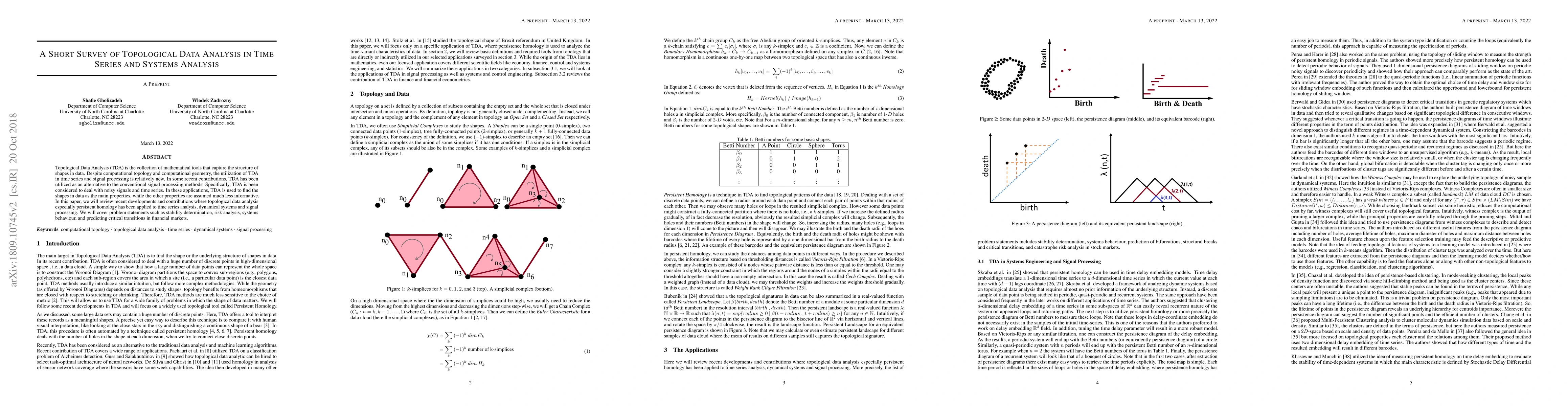 Topological Data Analysis (TDA) is the collection of mathematical tools that capture the structure of shapes in data. Despite computational topology and computational geometry, the utilization of TDA in time series and signal processing is relatively new. In some recent contributions, TDA has been utilized as an alternative to the conventional signal processing methods. Specifically, TDA is been considered to deal with noisy signals and time series. In these applications, TDA is used to find the shapes in data as the main properties, while the other properties are assumed much less informative. In this paper, we will review recent developments and contributions where topological data analysis especially persistent homology has been applied to time series analysis, dynamical systems and signal processing. We will cover problem statements such as stability determination, risk analysis, systems behaviour, and predicting critical transitions in financial markets.