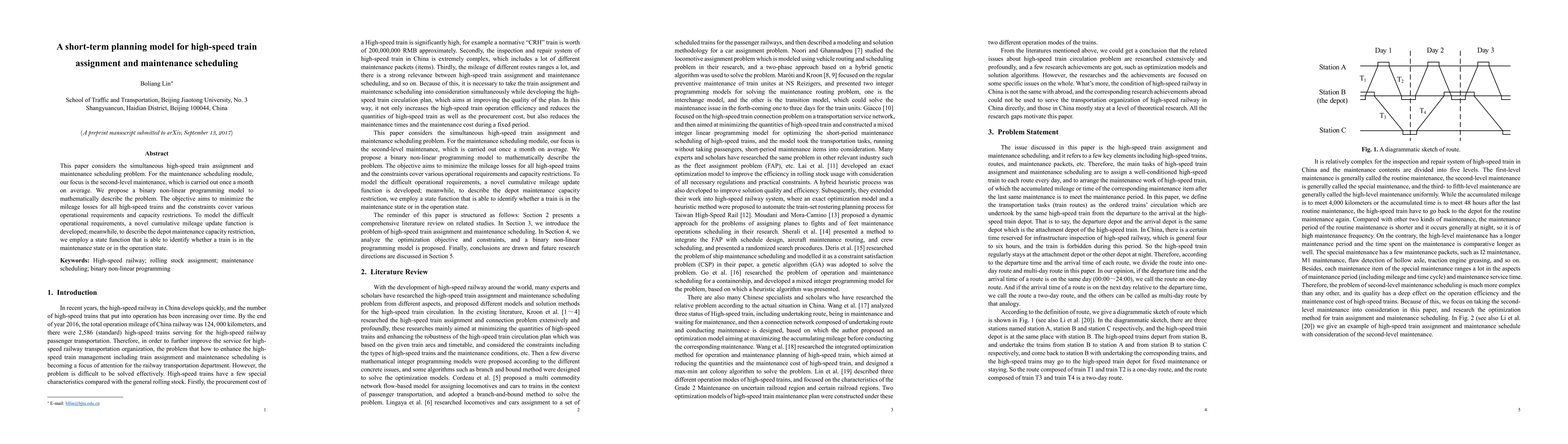 This paper considers the simultaneous high-speed train assignment and maintenance scheduling problem. For the maintenance scheduling module, our focus is the second-level maintenance, which is carried out once a month on average. We propose a binary non-linear programming model to mathematically describe the problem. The objective aims to minimize the mileage losses for all high-speed trains and the constraints cover various operational requirements and capacity restrictions. To model the difficult operational requirements, a novel cumulative mileage update function is developed; meanwhile, to describe the depot maintenance capacity restriction, we employ a state function that is able to identify whether a train is in the maintenance state or in the operation state.