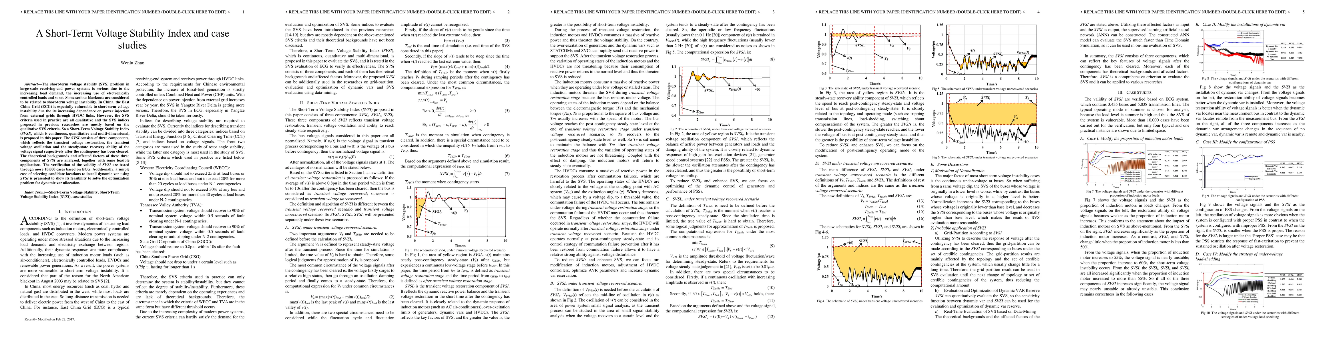 A new short-term voltage stability index (SVSI) is proposed to assess power systems, providing a continuous, quantitative, and multi-dimensional measure of voltage stability in China's East China Grid.