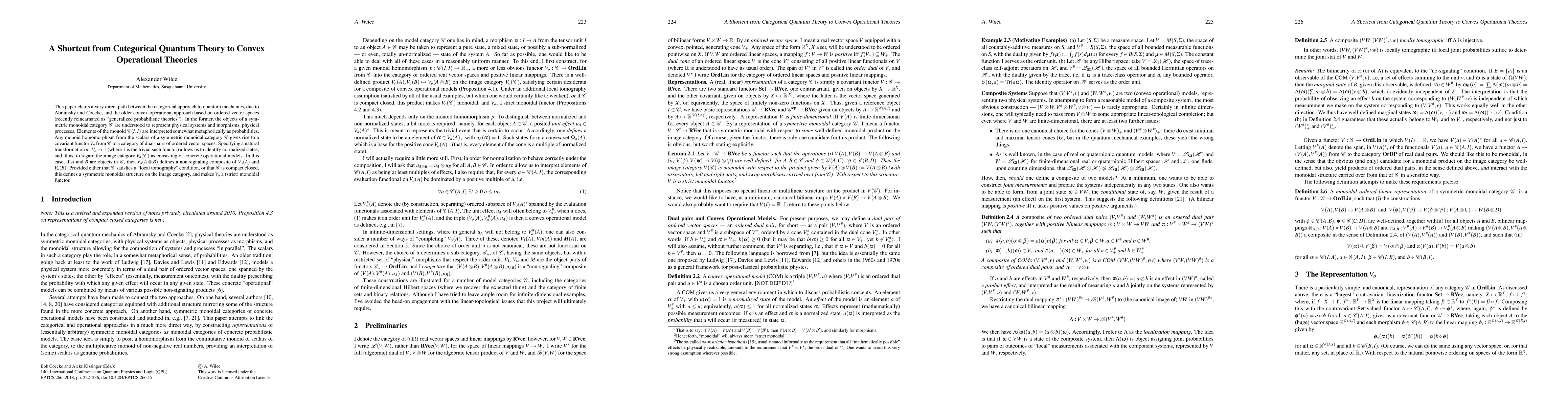 This paper charts a very direct path between the categorical approach to quantum mechanics, due to Abramsky and Coecke, and the older convex-operational approach based on ordered vector spaces (recently reincarnated as "generalized probabilistic theories"). In the former, the objects of a symmetric monoidal category C are understood to represent physical systems and morphisms, physical processes. Elements of the monoid C(I,I) are interpreted somewhat metaphorically as probabilities. Any monoid homomorphism from the scalars of a symmetric monoidal category C gives rise to a covariant functor V_o from C to a category of dual-pairs of ordered vector spaces. Specifying a natural transformation u from V_o to 1 (where 1 is the trivial such functor) allows us to identify normalized states, and, thus, to regard the image category V_o(C) as consisting of concrete operational models. In this case, if A and B are objects in C, then V_o(A x B) defines a non-signaling composite of V_o(A) and V_o(B). Provided either that C satisfies a "local tomography" condition, or that C is compact closed, this defines a symmetric monoidal structure on the image category, and makes V_o a (strict) monoidal functor.