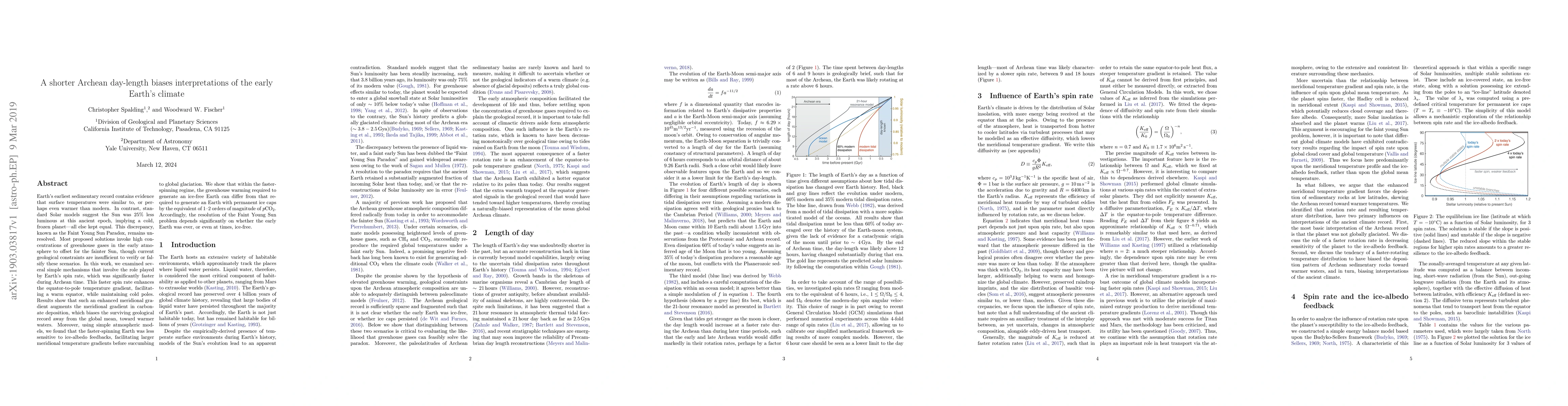 Earth's earliest sedimentary record contains evidence that surface temperatures were similar to, or perhaps even warmer than modern. In contrast, standard Solar models suggest the Sun was 25% less luminous at this ancient epoch, implying a cold, frozen planet-all else kept equal. This discrepancy, known as the Faint Young Sun Paradox, remains unresolved. Most proposed solutions invoke high concentrations of greenhouse gases in the early atmosphere to offset for the fainter Sun, though current geological constraints are insufficient to verify or falsify these scenarios. In this work, we examined several simple mechanisms that involve the role played by Earth's spin rate, which was significantly faster during Archean time. This faster spin rate enhances the equator-to-pole temperature gradient, facilitating a warm equator, while maintaining cold poles. Results show that such an enhanced meridional gradient augments the meridional gradient in carbonate deposition, which biases the surviving geological record away from the global mean, toward warmer waters. Moreover, using simple atmospheric models, we found that the faster-spinning Earth was less sensitive to ice-albedo feedbacks, facilitating larger meridional temperature gradients before succumbing to global glaciation. We show that within the faster-spinning regime, the greenhouse warming required to generate an ice-free Earth can differ from that required to generate an Earth with permanent ice caps by the equivalent of 1-2 orders of magnitude of pCO2. Accordingly, the resolution of the Faint Young Sun problem depends significantly on whether the early Earth was ever, or even at times, ice-free.