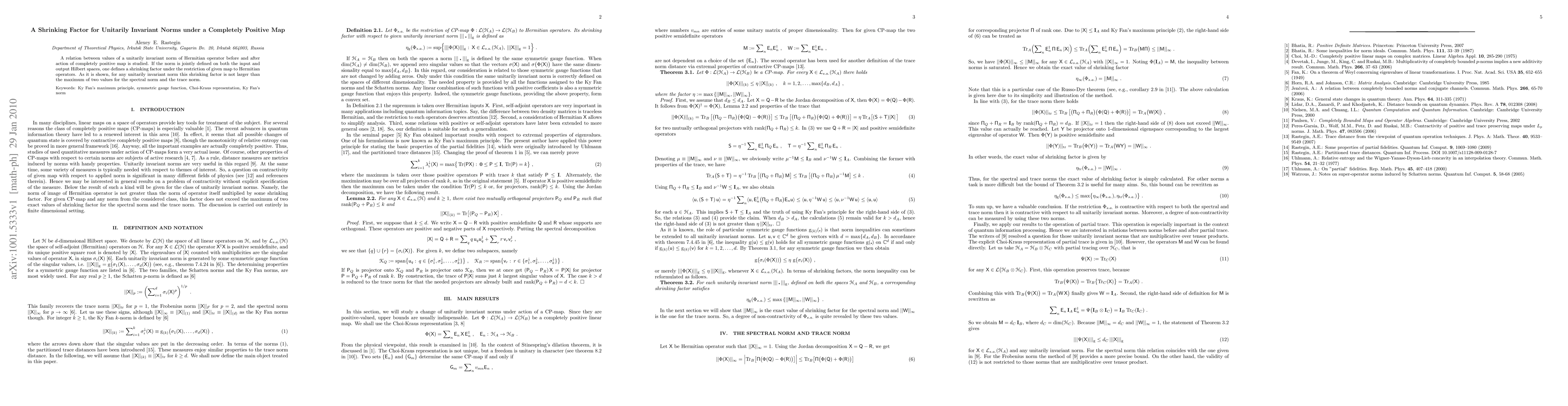 A relation between values of a unitarily invariant norm of Hermitian operator before and after action of completely positive map is studied. If the norm is jointly defined on both the input and output Hilbert spaces, one defines a shrinking factor under the restriction of given map to Hermitian operators. As it is shown, for any unitarily invariant norm this shrinking factor is not larger than the maximum of two values for the spectral norm and the trace norm.