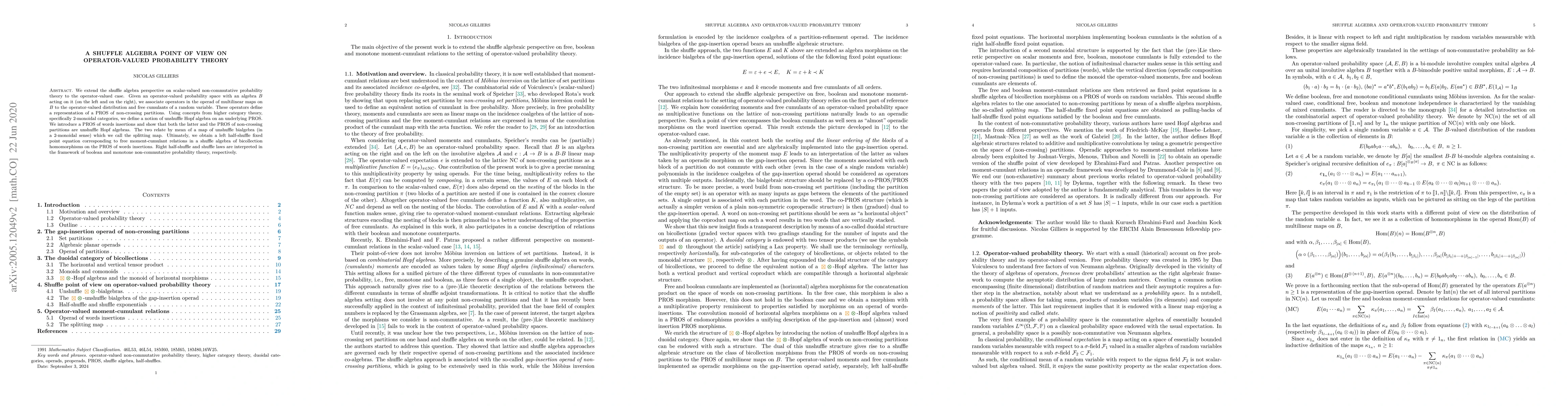 Researchers extend shuffle algebra perspective to operator-valued probability theory, linking it to higher category theory concepts and introducing a new framework for studying non-commutative probabilities.