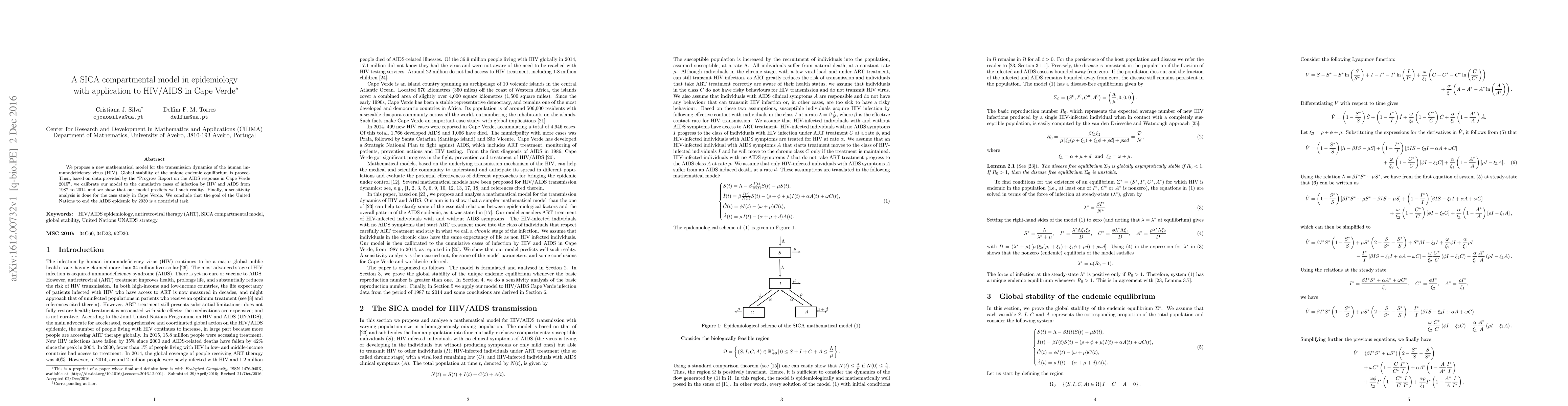 This paper introduces a new SICA compartmental model to study HIV/AIDS transmission dynamics, proving its global stability. The model is calibrated to Cape Verde's HIV/AIDS data from 1987 to 2014, showing good predictive accuracy, and a sensitivity analysis indicates the challenge of achieving the UN's 2030 AIDS epidemic goal.