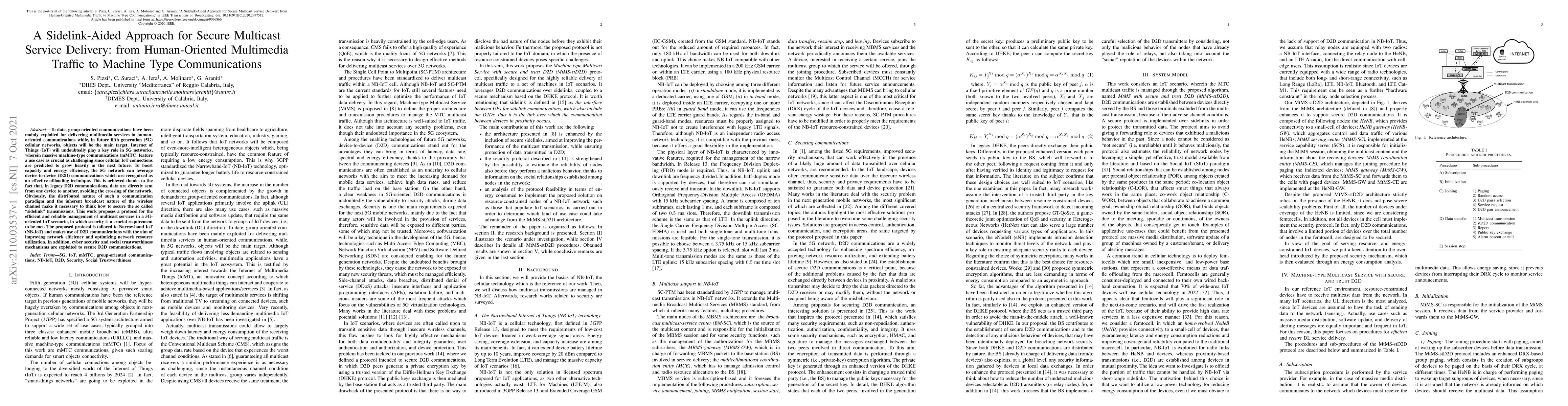 To date, group-oriented communications have been mainly exploited for delivering multimedia services in human-oriented communications while, in future fifth generation (5G) cellular networks, objects will be the main target. Internet of Things (IoT) will undoubtedly play a key role in 5G networks, wherein massive machine-type communications (mMTC) feature a use case as crucial as challenging since cellular IoT connections are predicted to grow heavily in the next future. To boost capacity and energy efficiency, the 5G network can leverage device-to-device (D2D) communications which are recognized as an effective offloading technique. This is achieved thanks to the fact that, in legacy D2D communications, data are directly sent from one device to another, avoiding the crossing of the network. Obviously, the distributed nature of such a communication paradigm and the inherent broadcast nature of the wireless channel make it necessary to think how to secure the so called "sidelink" transmissions. This work proposes a protocol for the efficient and reliable management of multicast services in a 5G-oriented IoT scenario, in which security is a crucial requirement to be met. The proposed protocol is tailored to Narrowband IoT (NB-IoT) and makes use of D2D communications with the aim of improving network efficiency and optimizing network resource utilization. In addition, cyber security and social trustworthiness mechanisms are exploited to secure D2D communications.