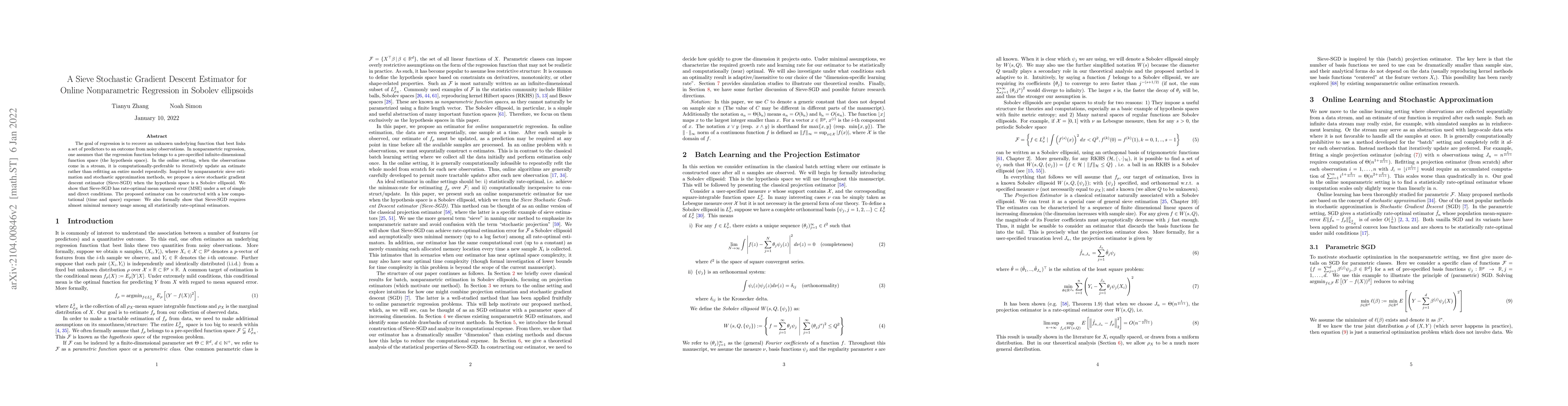 This paper proposes a Sieve Stochastic Gradient Descent (Sieve-SGD) estimator for online nonparametric regression within Sobolev ellipsoids, demonstrating its rate-optimal mean squared error under straightforward conditions and minimal computational and memory requirements.