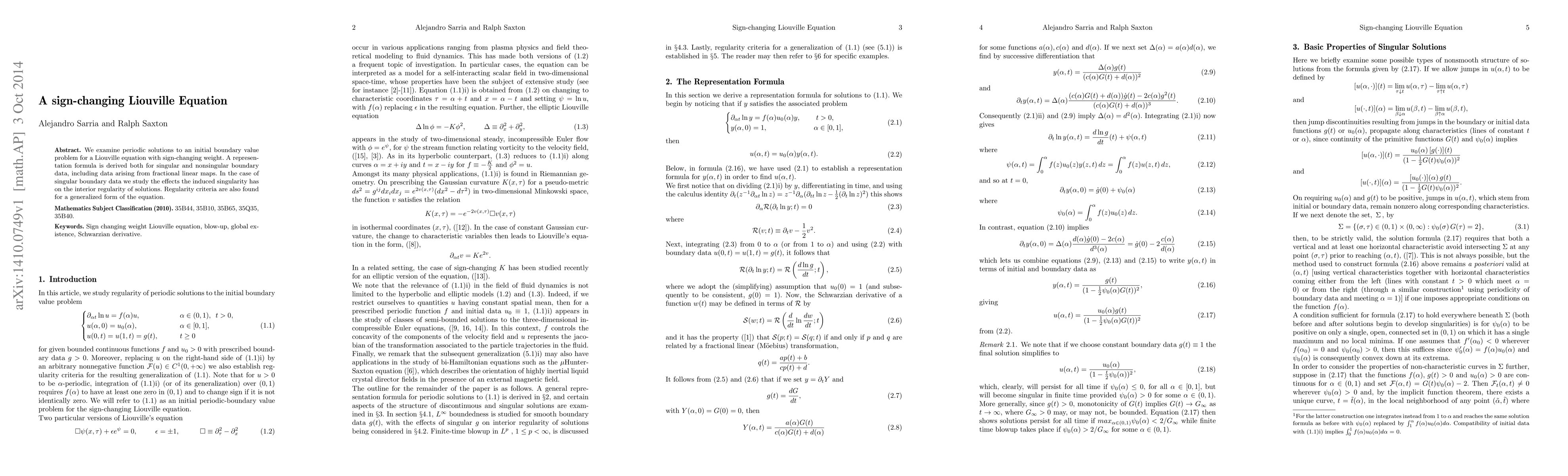 This work is novel in that it provides a detailed analysis of the blow-up behavior of the solution to the Liouville equation, which has important implications for our understanding of nonlinear wave equations.