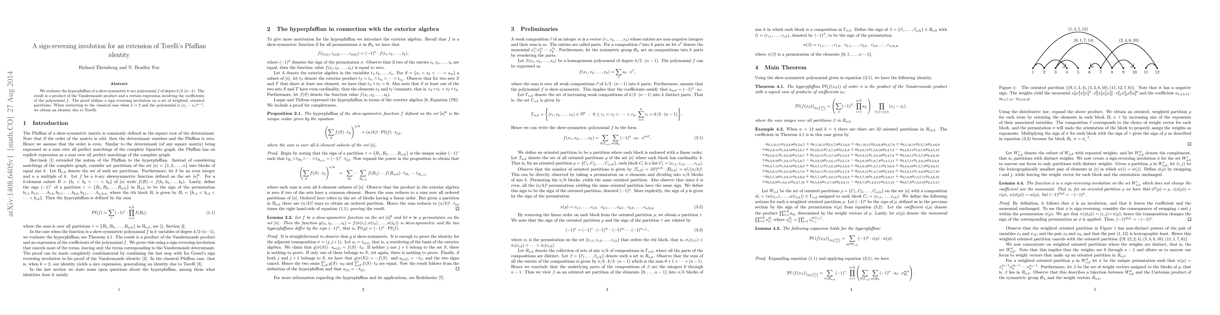 This paper presents a method to evaluate the hyperpfaffian of a skew-symmetric k-ary polynomial using a sign-reversing involution on weighted, oriented partitions. The result is a product of the Vandermonde product and an expression involving the polynomial's coefficients. The approach generalizes Torelli's Pfaffian identity, which is recovered when k=2 and the polynomial is (x_j - x_i)^(n-1).