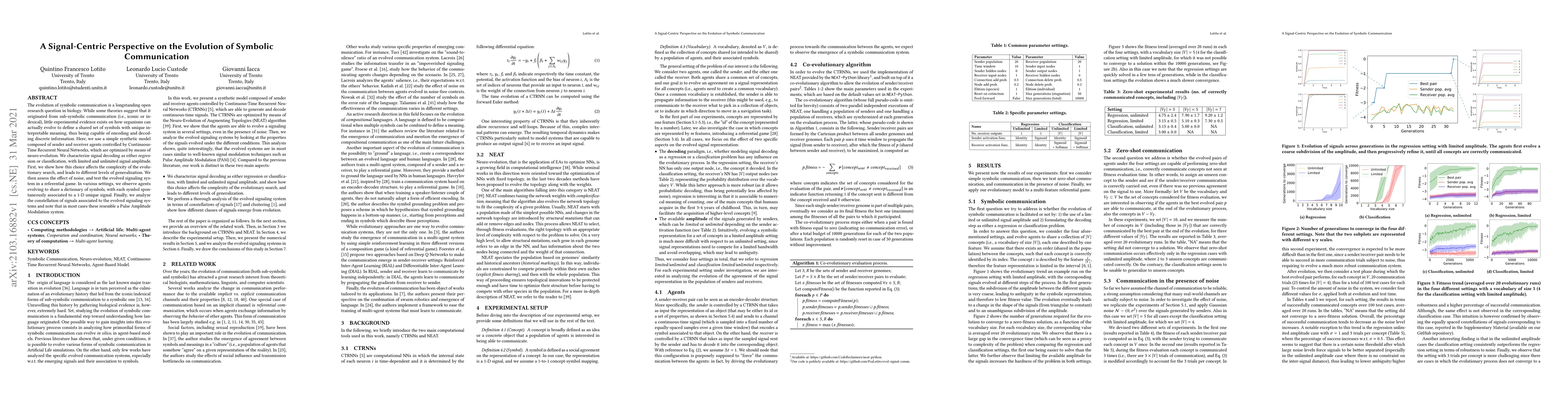 The evolution of symbolic communication is a longstanding open research question in biology. While some theories suggest that it originated from sub-symbolic communication (i.e., iconic or indexical), little experimental evidence exists on how organisms can actually evolve to define a shared set of symbols with unique interpretable meaning, thus being capable of encoding and decoding discrete information. Here, we use a simple synthetic model composed of sender and receiver agents controlled by Continuous-Time Recurrent Neural Networks, which are optimized by means of neuro-evolution. We characterize signal decoding as either regression or classification, with limited and unlimited signal amplitude. First, we show how this choice affects the complexity of the evolutionary search, and leads to different levels of generalization. We then assess the effect of noise, and test the evolved signaling system in a referential game. In various settings, we observe agents evolving to share a dictionary of symbols, with each symbol spontaneously associated to a 1-D unique signal. Finally, we analyze the constellation of signals associated to the evolved signaling systems and note that in most cases these resemble a Pulse Amplitude Modulation system.