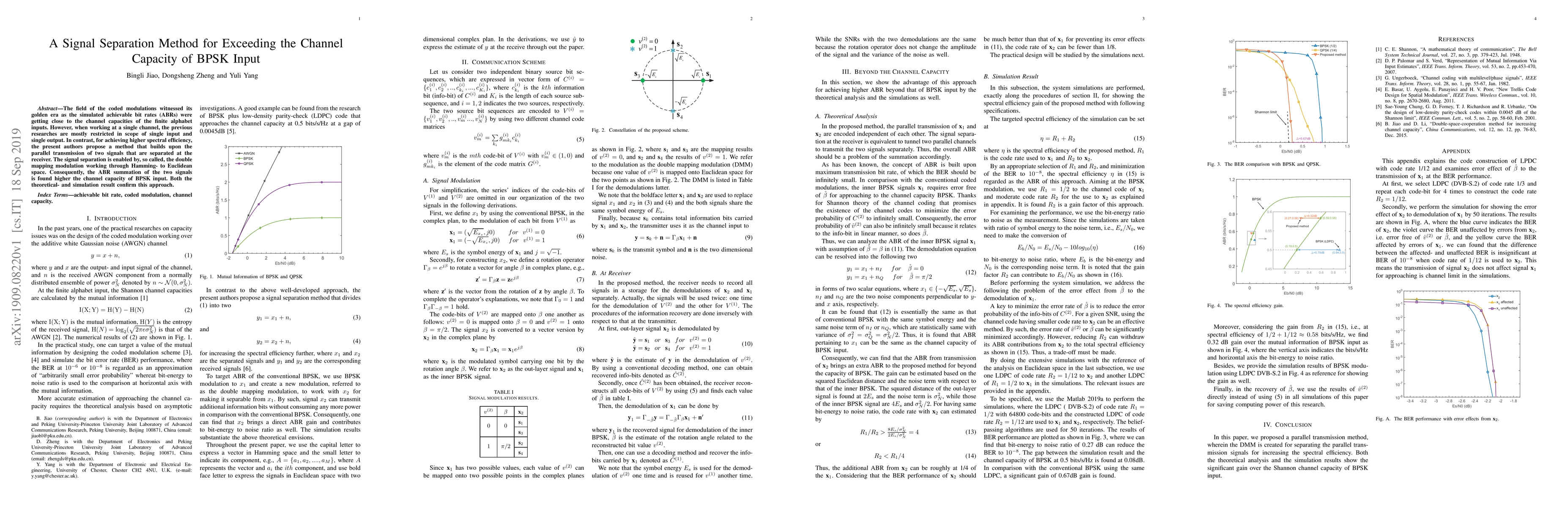 The field of the coded modulations witnessed its golden era as the simulated achievable bit rates (ABRs) were getting close to the channel capacities of the finite alphabet inputs. However, when working at a single channel, the previous researches are mostly restricted in scope of single input and single output. In contrast, for achieving higher spectral efficiency, the present authors propose a method that builds upon the parallel transmission of two signals that are separated at the receiver. The signal separation is enabled by, so called, the double mapping modulation working through Hamming- to Euclidean space. Consequently, the ABR summation of the two signals is found higher the channel capacity of BPSK input. Both the theoretical- and simulation result confirm this approach.