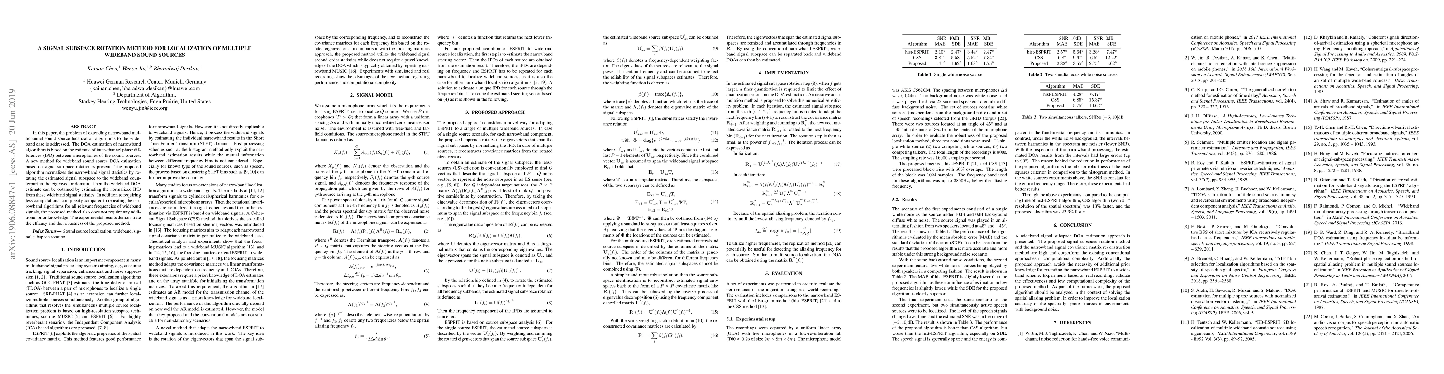 This paper proposes a new method for wideband sound source direction-of-arrival (DOA) estimation using signal subspace rotation, which normalizes narrowband signal statistics and requires less computational complexity without needing additional prior knowledge. Experimental results show the method's efficacy and robustness.