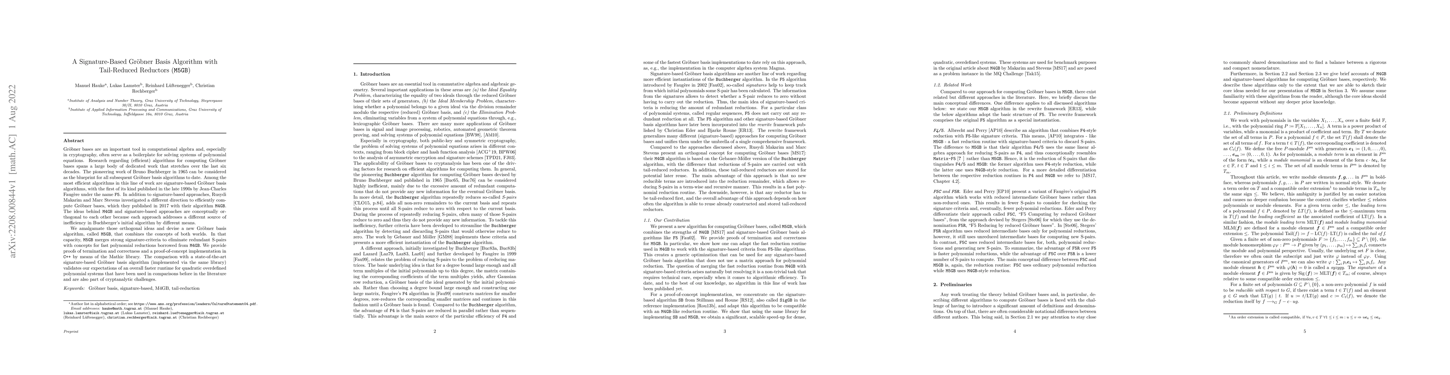 This paper introduces M5GB, a new signature-based Gröbner basis algorithm that combines signature-criteria for eliminating redundant S-pairs with fast polynomial reduction techniques from M4GB. The authors provide proofs of termination and correctness, and demonstrate faster runtime performance compared to existing algorithms for quadratic overdefined polynomial systems.