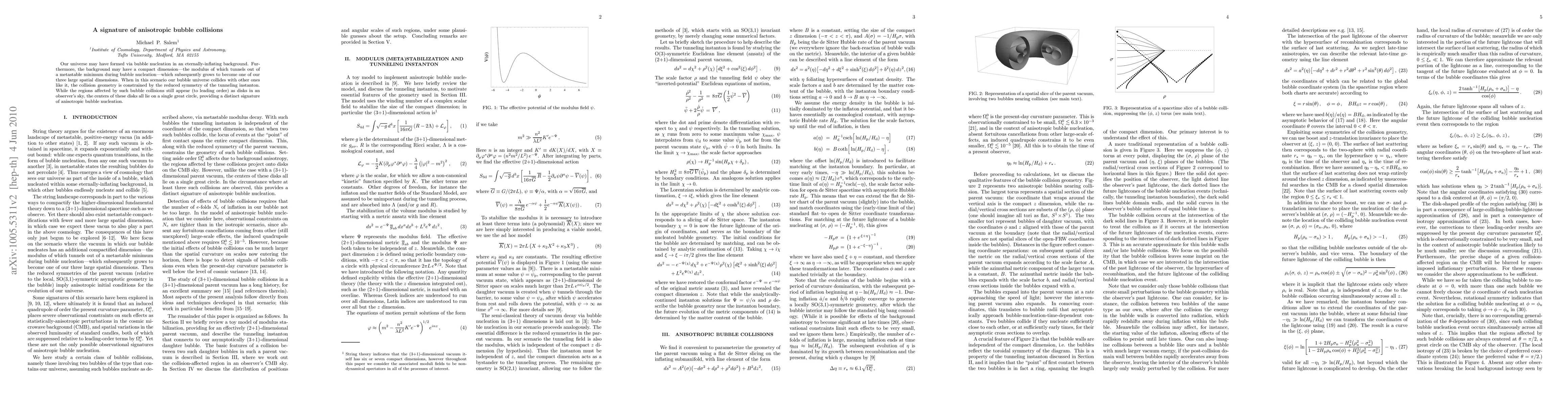 Our universe may have formed via bubble nucleation in an eternally-inflating background. Furthermore, the background may have a compact dimension---the modulus of which tunnels out of a metastable minimum during bubble nucleation---which subsequently grows to become one of our three large spatial dimensions. When in this scenario our bubble universe collides with other ones like it, the collision geometry is constrained by the reduced symmetry of the tunneling instanton. While the regions affected by such bubble collisions still appear (to leading order) as disks in an observer's sky, the centers of these disks all lie on a single great circle, providing a distinct signature of anisotropic bubble nucleation.