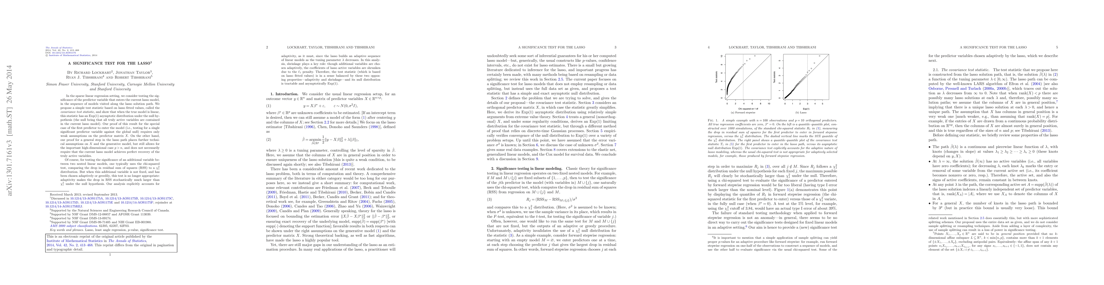 Researchers developed a significance test for lasso models in sparse linear regression, showing that the test statistic has an exponential distribution under certain conditions, allowing for adaptive variable selection.