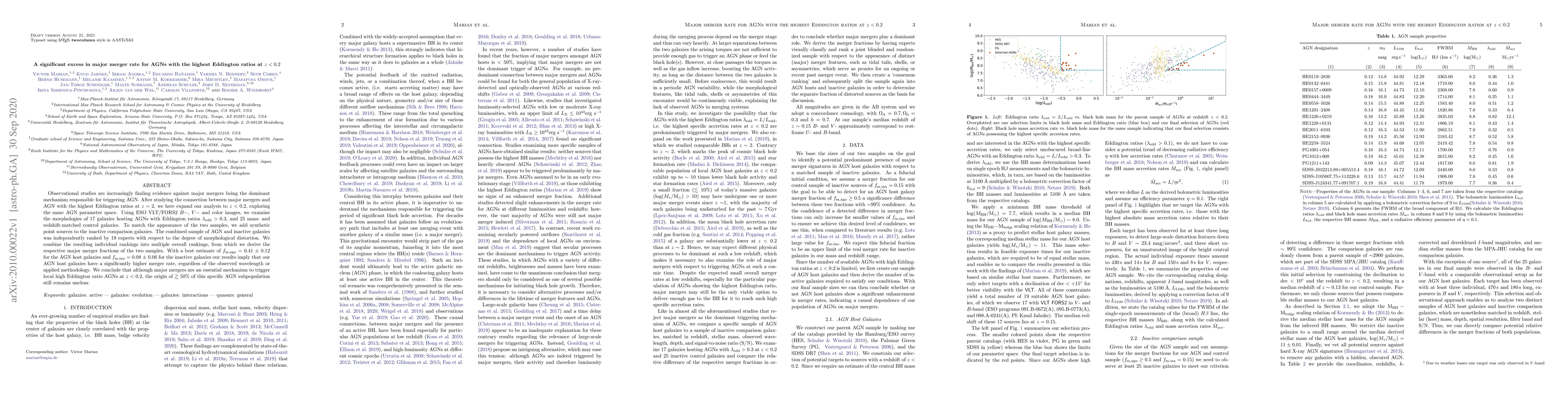 A study of galaxies hosting active galactic nuclei (AGNs) with high Eddington ratios found that these AGN have a significantly higher merger rate than inactive galaxies, suggesting major mergers may not be the sole trigger for their activity.