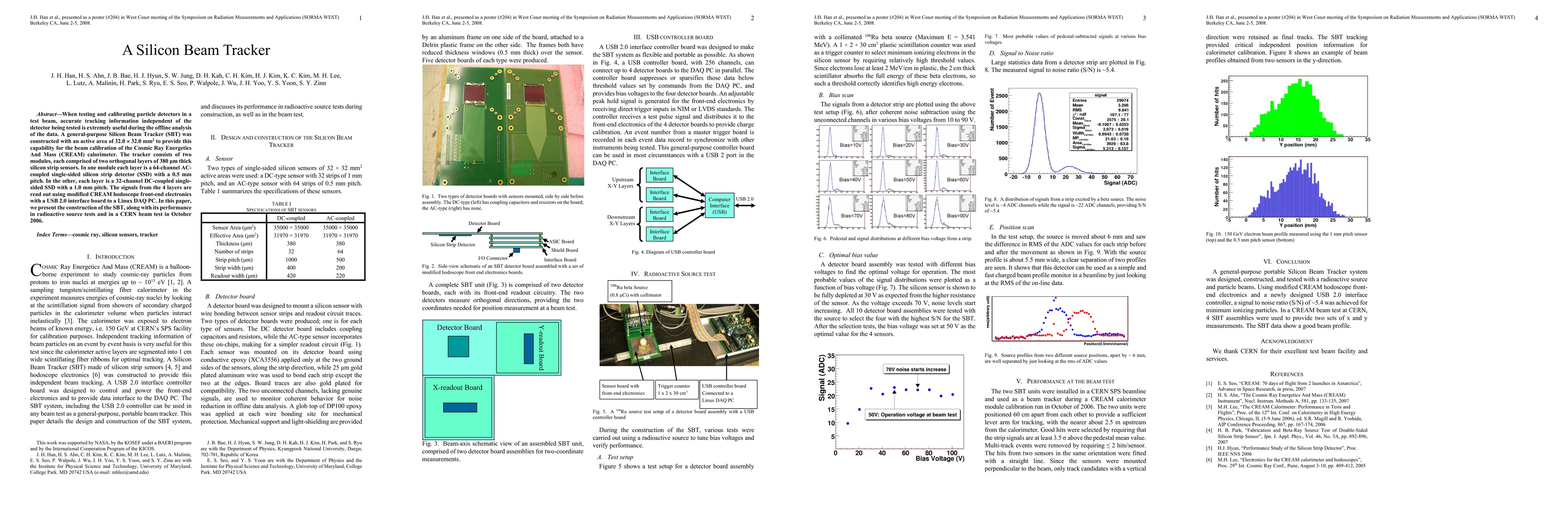 When testing and calibrating particle detectors in a test beam, accurate tracking information independent of the detector being tested is extremely useful during the offline analysis of the data. A general-purpose Silicon Beam Tracker (SBT) was constructed with an active area of 32.0 x 32.0 mm2 to provide this capability for the beam calibration of the Cosmic Ray Energetics And Mass (CREAM) calorimeter. The tracker consists of two modules, each comprised of two orthogonal layers of 380 {\mu}m thick silicon strip sensors. In one module each layer is a 64-channel AC-coupled single-sided silicon strip detector (SSD) with a 0.5 mm pitch. In the other, each layer is a 32-channel DC-coupled single-sided SSD with a 1.0 mm pitch. The signals from the 4 layers are read out using modified CREAM hodoscope front-end electronics with a USB 2.0 interface board to a Linux DAQ PC. In this paper, we present the construction of the SBT, along with its performance in radioactive source tests and in a CERN beam test in October 2006.