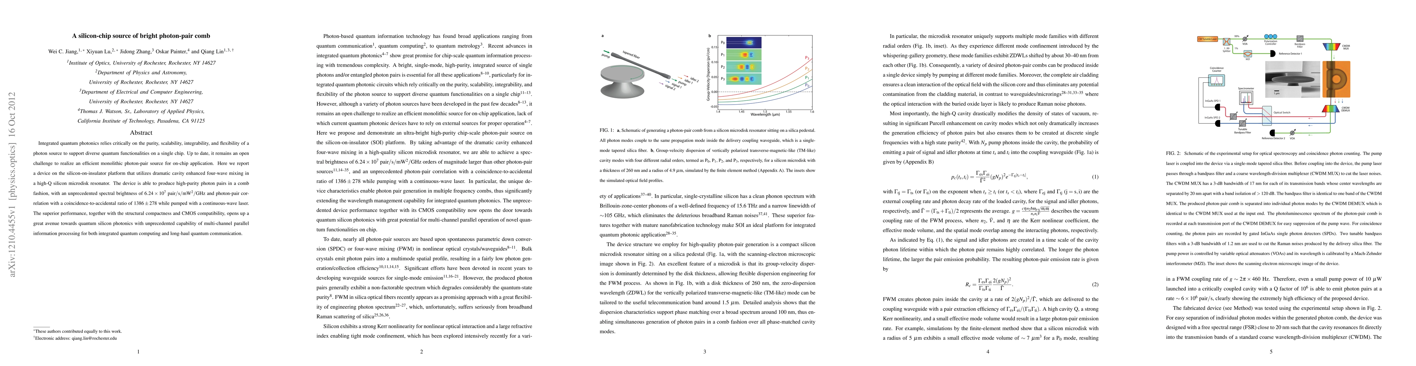 This paper reports a silicon-chip device that efficiently generates high-purity, bright photon-pair combs via cavity-enhanced four-wave mixing in a microdisk resonator, achieving exceptional spectral brightness and integration potential for advanced quantum applications.