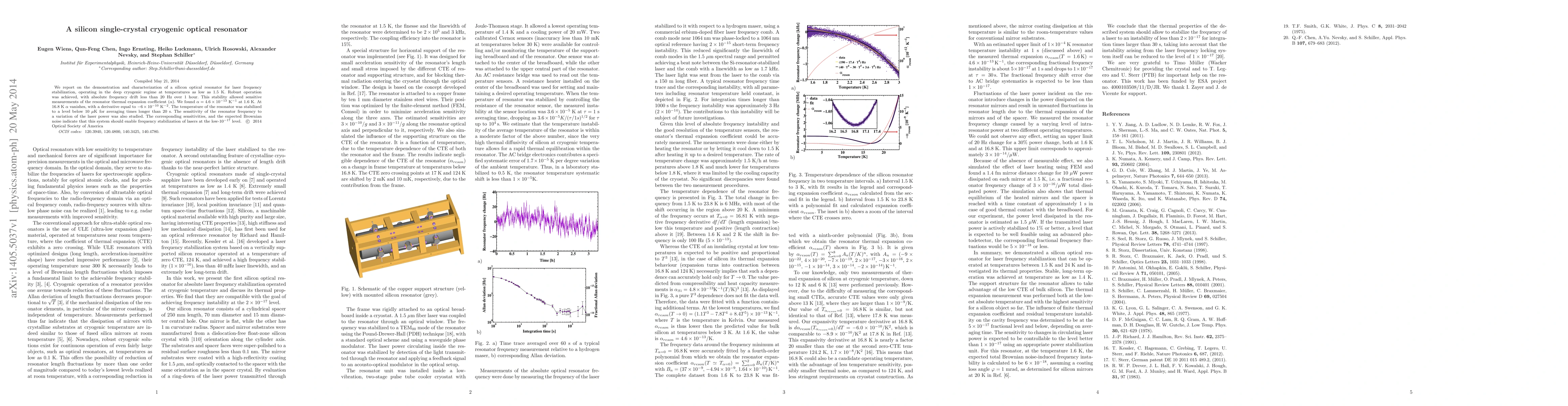 This paper demonstrates a silicon single-crystal optical resonator for laser frequency stabilization at cryogenic temperatures, achieving stability with frequency drift below 20 Hz. The study reveals a thermal expansion coefficient of $4.6\times10^{-13}$ ${\rm K^{-1}}$ at 1.6 K and indicates potential for laser frequency stabilization at the low-$10^{-17}$ level.