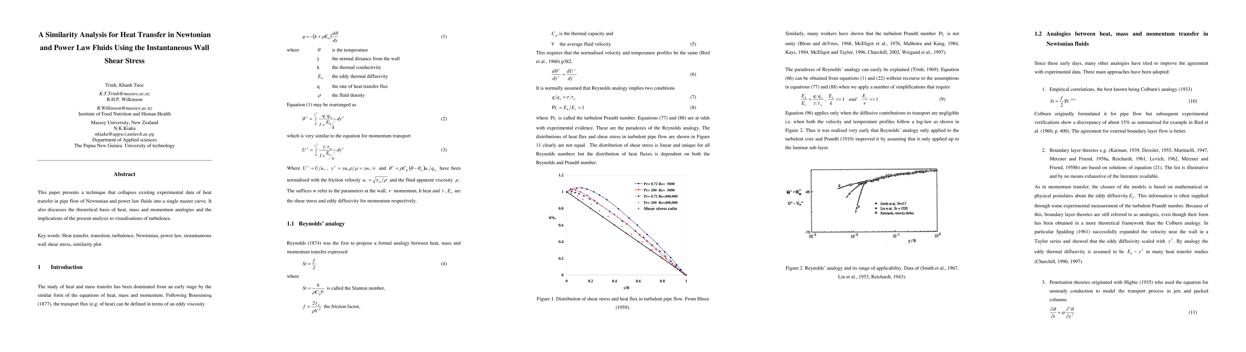 This paper presents a technique that collapses existing experimental data of heat transfer in pipe flow of Newtonian and power law fluids into a single master curve. It also discusses the theoretical basis of heat, mass and momentum analogies and the implications of the present analysis to visualisations of turbulence.