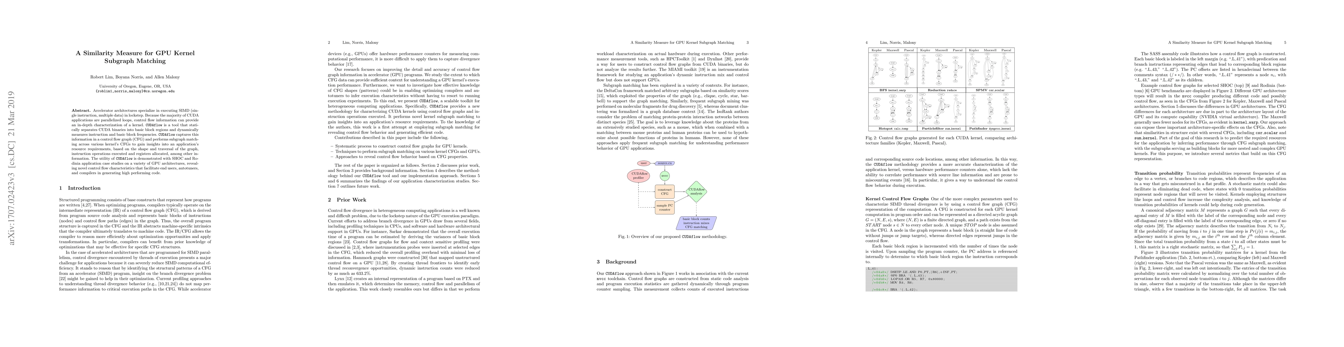 Accelerator architectures specialize in executing SIMD (single instruction, multiple data) in lockstep. Because the majority of CUDA applications are parallelized loops, control flow information can provide an in-depth characterization of a kernel. CUDAflow is a tool that statically separates CUDA binaries into basic block regions and dynamically measures instruction and basic block frequencies. CUDAflow captures this information in a control flow graph (CFG) and performs subgraph matching across various kernel's CFGs to gain insights to an application's resource requirements, based on the shape and traversal of the graph, instruction operations executed and registers allocated, among other information. The utility of CUDAflow is demonstrated with SHOC and Rodinia application case studies on a variety of GPU architectures, revealing novel thread divergence characteristics that facilitates end users, autotuners and compilers in generating high performing code.