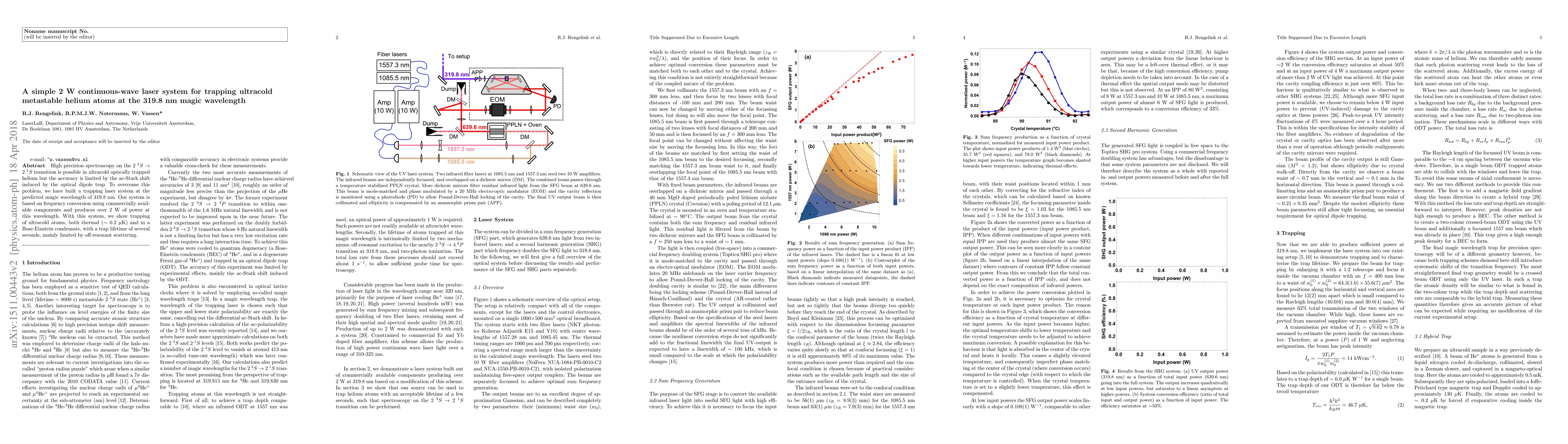 This paper describes a 2 W continuous-wave laser system operating at 319.8 nm to trap ultracold metastable helium atoms, overcoming the ac-Stark shift issue in optical dipole traps. The system enables high-precision spectroscopy on the $2 \ ^3 S \rightarrow 2 \ ^1 S$ transition with trapped atoms, including thermal and Bose-Einstein condensate states.