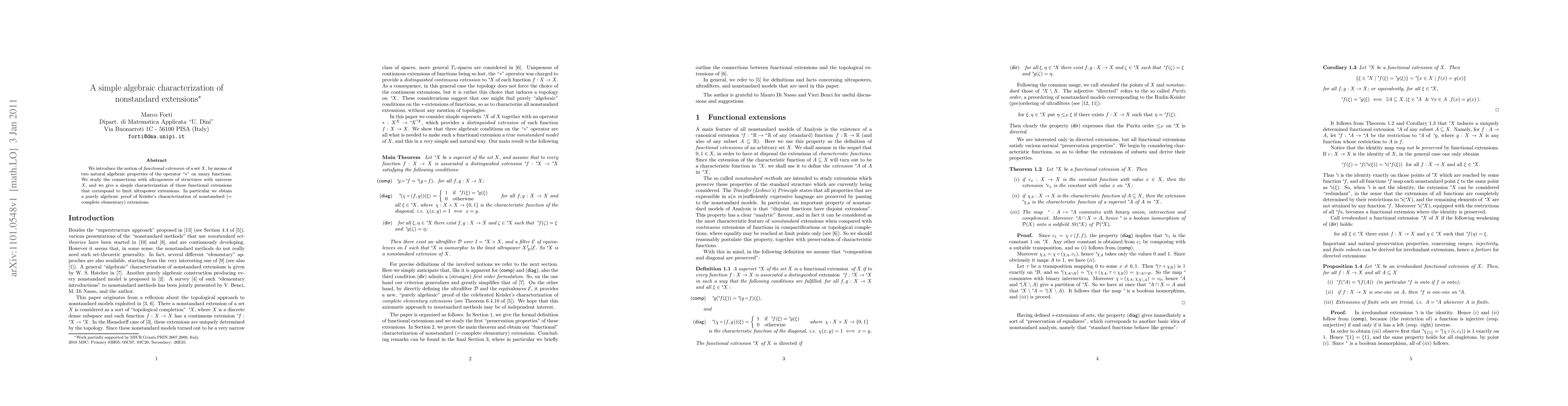 This paper introduces "functional extension" of a set X using algebraic properties, and connects it to ultrapowers, providing a simple algebraic proof of Keisler's characterization of nonstandard extensions.