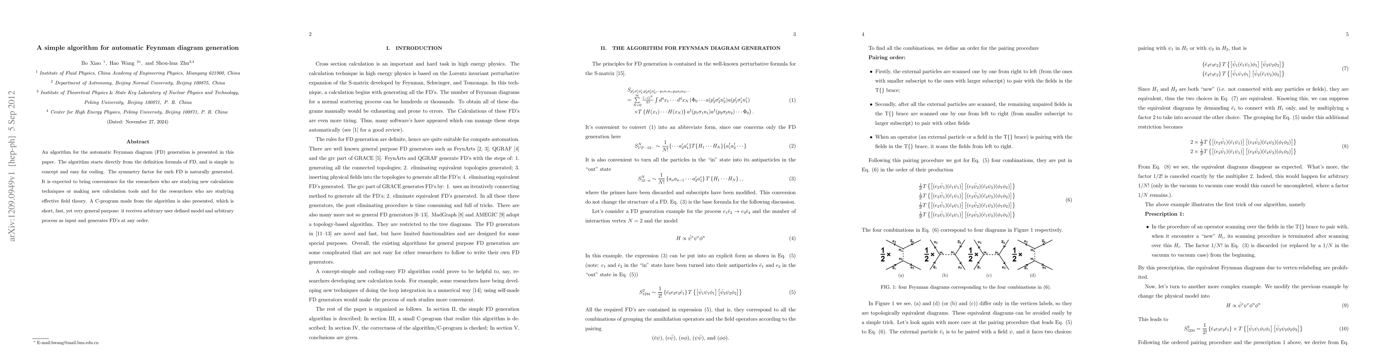 The proposed algorithm provides a simple and efficient way to generate Feynman diagrams.