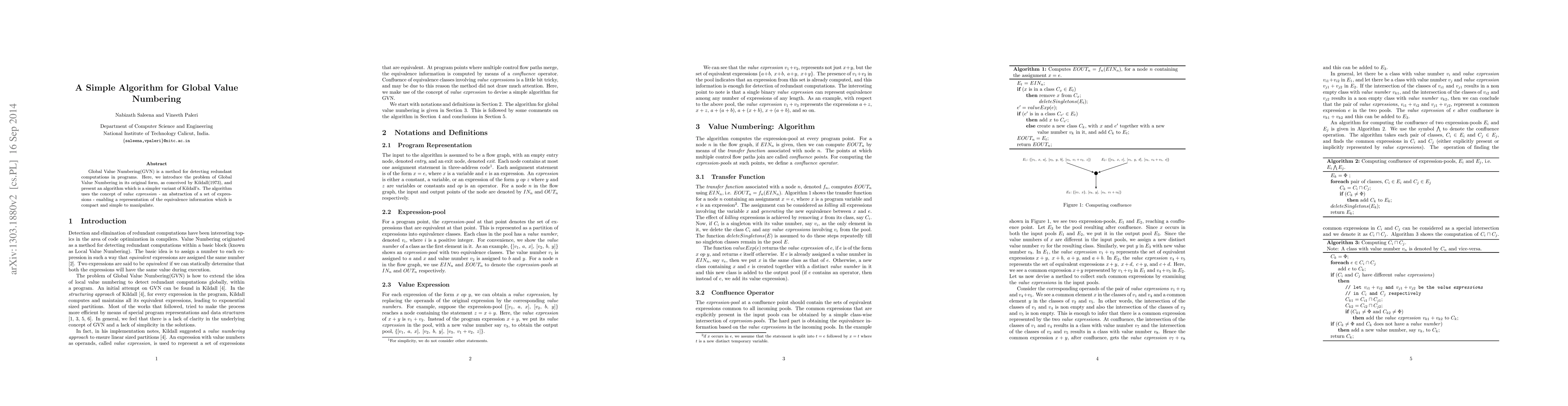 Global Value Numbering(GVN) is a method for detecting redundant computations in programs. Here, we introduce the problem of Global Value Numbering in its original form, as conceived by Kildall(1973), and present an algorithm which is a simpler variant of Kildall's. The algorithm uses the concept of value expression - an abstraction of a set of expressions - enabling a representation of the equivalence information which is compact and simple to manipulate.