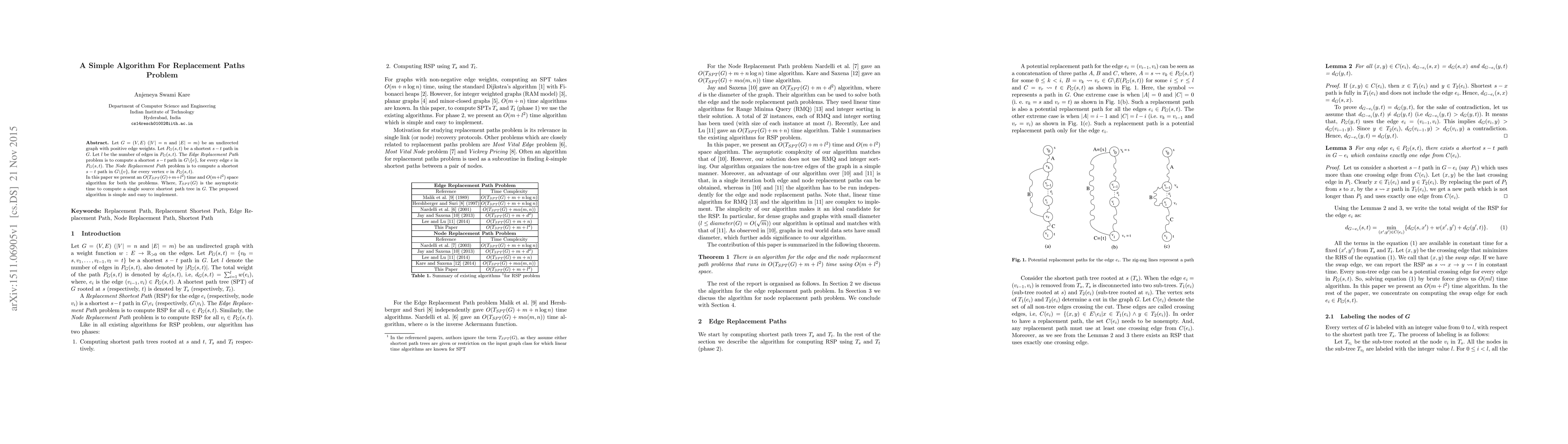 This paper presents an efficient O(T_{SPT}(G)+m+l^2) time and O(m+l^2) space algorithm for solving both the Edge Replacement Path and Node Replacement Path problems in undirected graphs, offering a straightforward implementation.