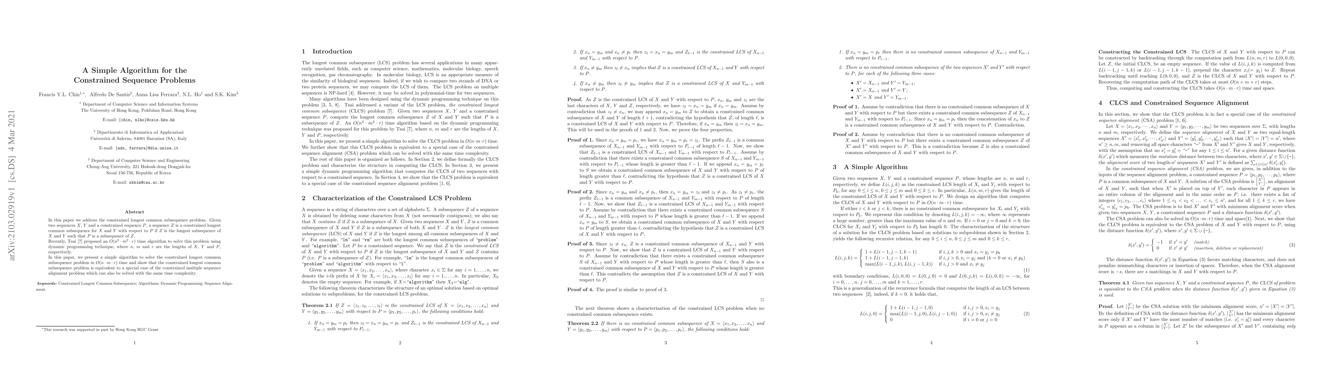 The research presents a simple algorithm for the constrained longest common subsequence (CLCS) problem, utilizing dynamic programming techniques.