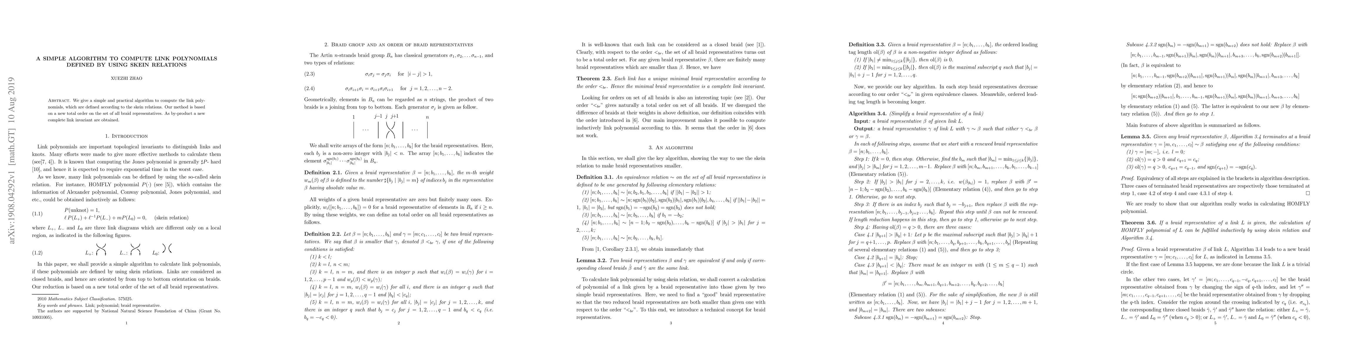 This paper presents a straightforward algorithm for computing link polynomials using skein relations, leveraging a novel total order on braid representatives. The method also yields a new, complete link invariant.