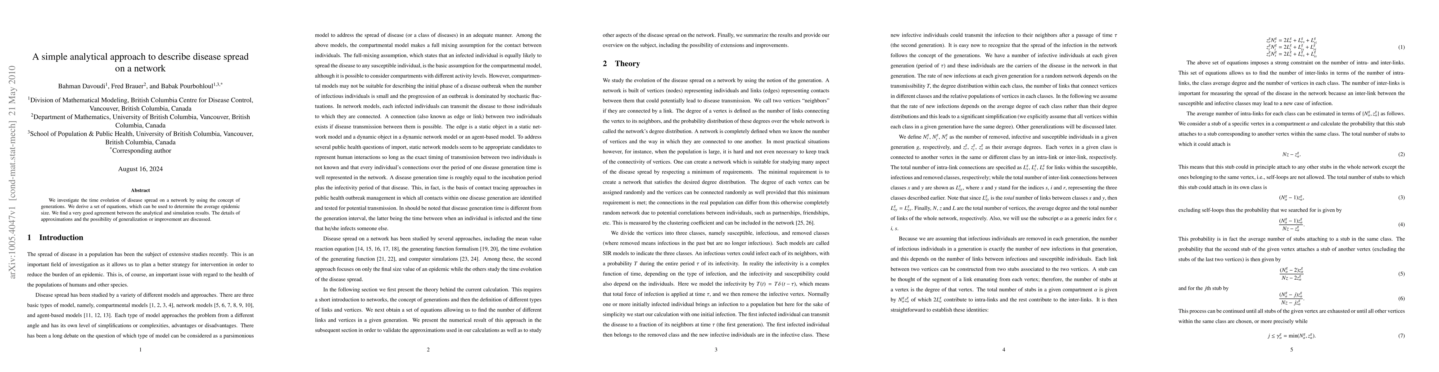 This research presents a straightforward analytical method to model disease spread across networks, deriving equations to predict average epidemic size. The model aligns well with simulation results, discussing its approximations and potential enhancements.